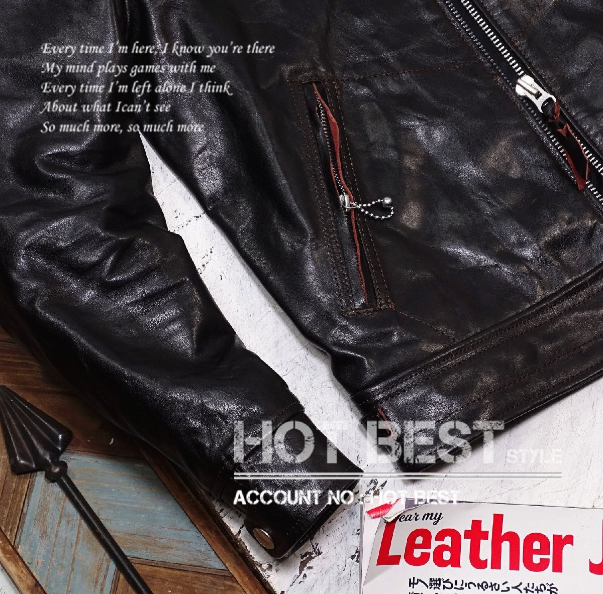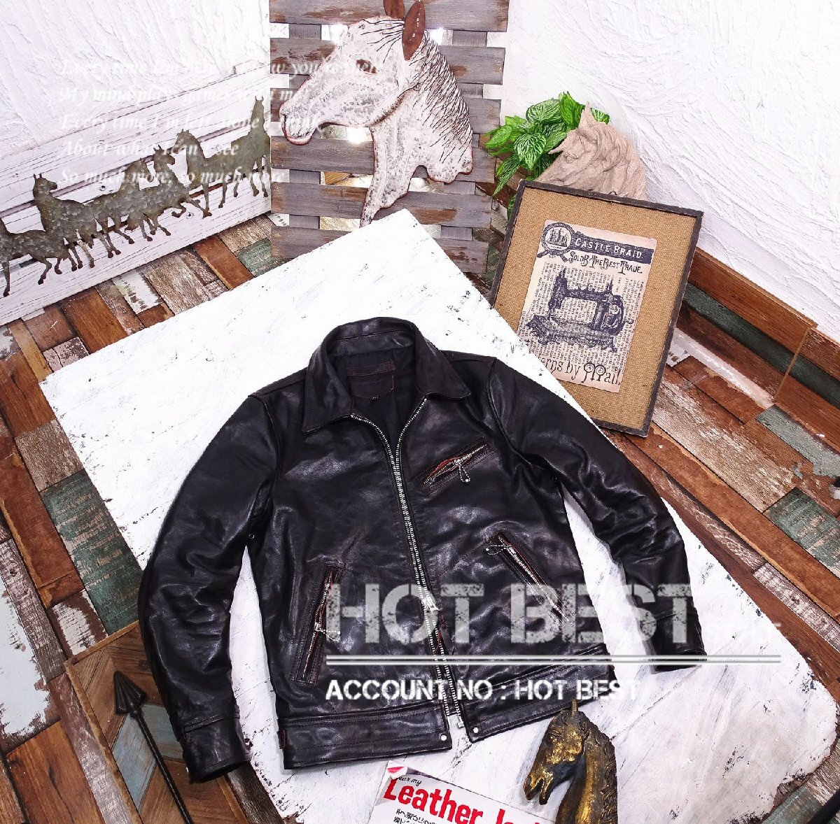 1.2mm 茶芯ホースハイド 30'sスタイル シングルライダース 革ジャン レザージャケット トスカーナ植物鞣し 馬革 Y2230/S~5XLサイズ指定可