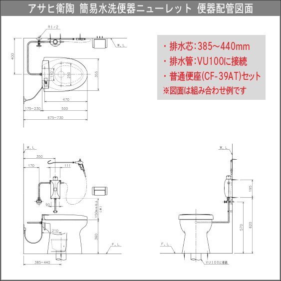 ・ アサヒ衛陶 タンクレス式簡易水洗トイレ ニューレット 普通便座セット