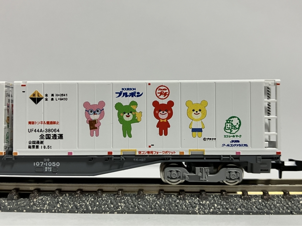 TOMIXコキ107-1050 HOGARAKADOUブルボン プチクマコンテナ2台搭載貨車-1601