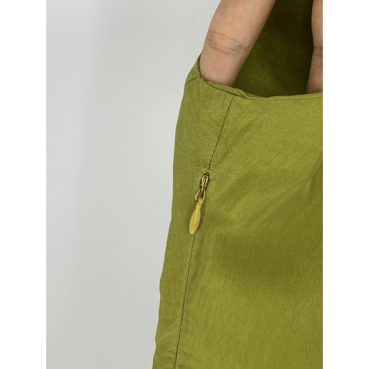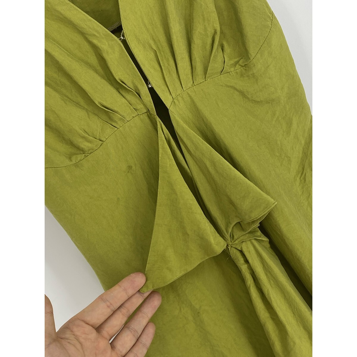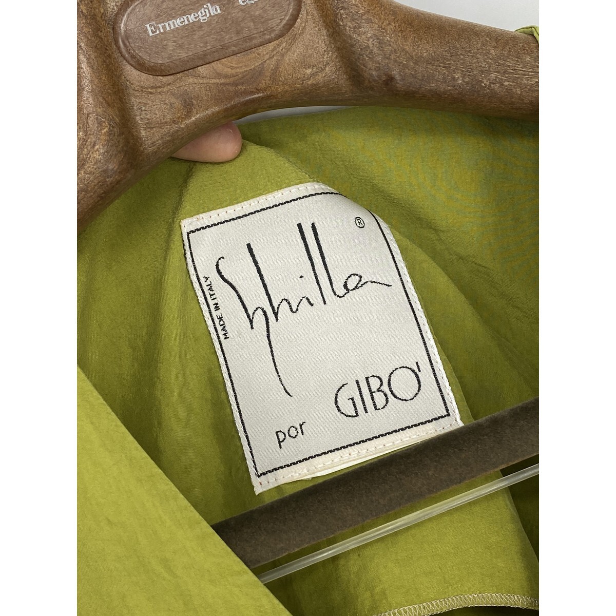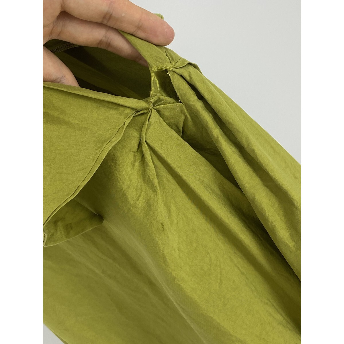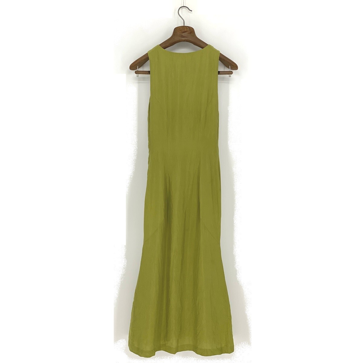 B0780/ビンテージ 80s Sybilla シビラ GIBO サテン シルク100% ノースリーブ フリル ドレス ロング マキシ丈 ワンピース 黄緑 レディース