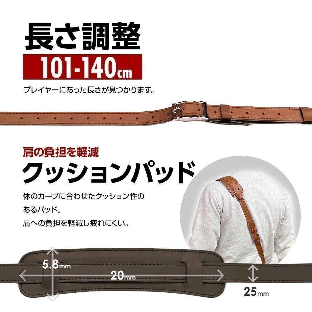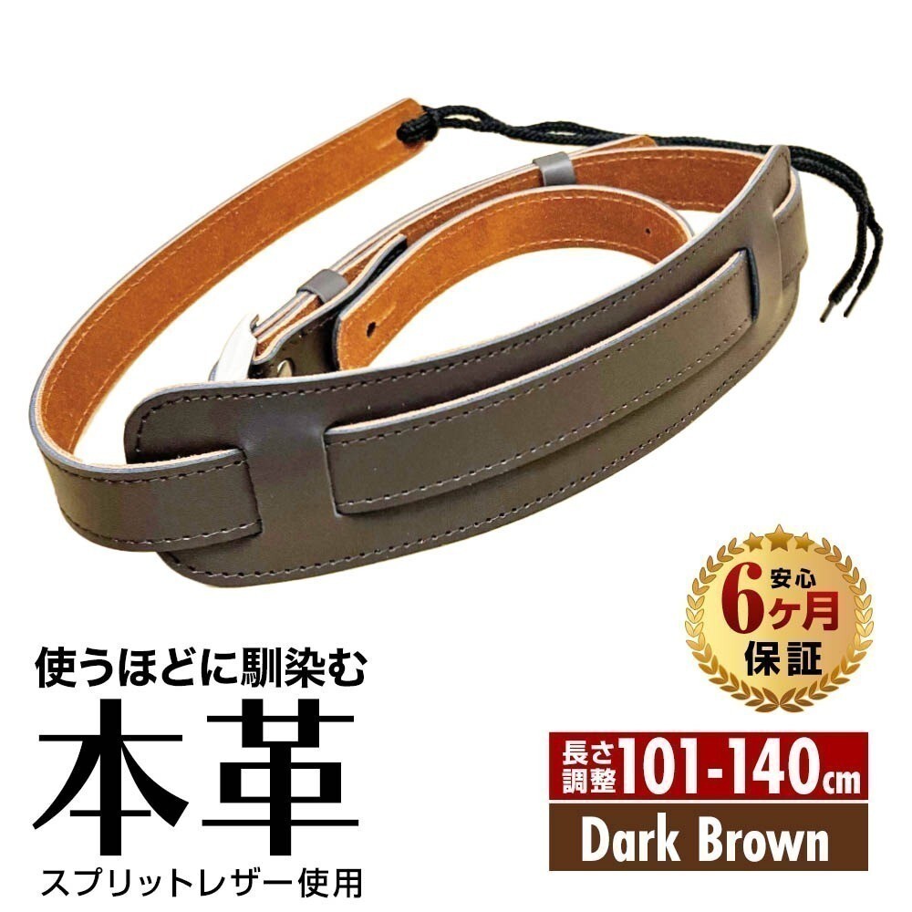 ギター ストラップ 本革 牛革 レザー 111cm-150cm 長さ調整可能 5.8cm幅 ショルダーパッド ベース エレキ アクセサリ 楽器 演奏 濃ブラウン