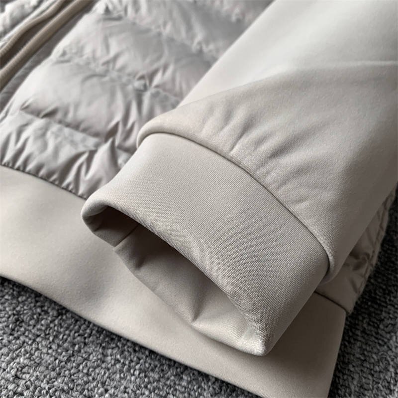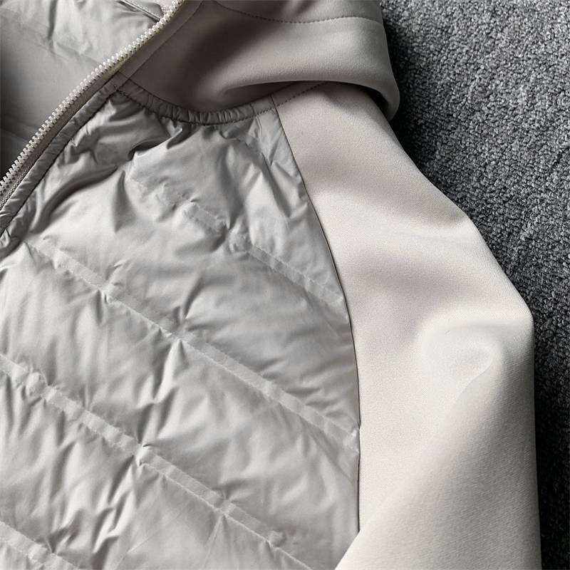 新品 DCKMANY ダウンジャケット ゴルフ フード付き 切り替え 秋 冬 シームレスダウン 保温 暖か メンズ ダウンアウター ベージュ E542-3XL