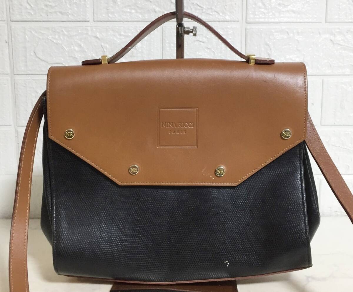 no36270 Nina Ricci ニナリッチ イタリア製 レザー リザード型押 2way ショルダー ハンド バッグ