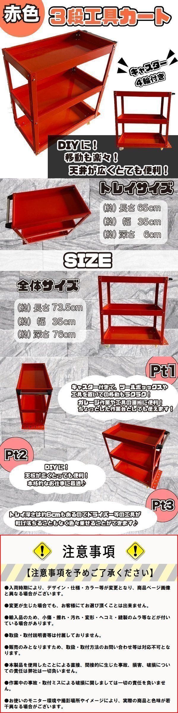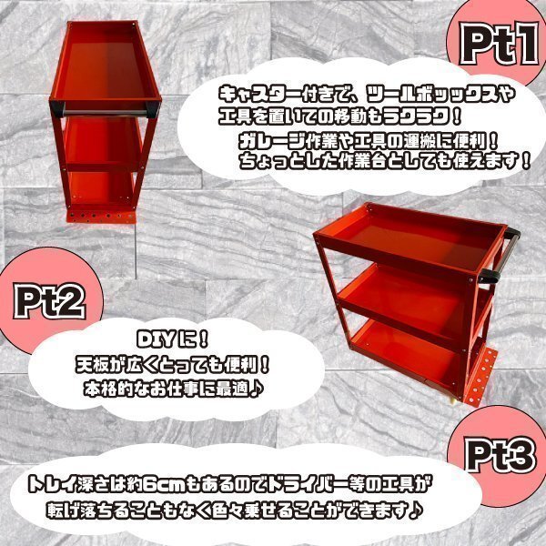 3段 サービスツールカート ツールワゴン 赤 サービスワゴン 工具箱 ワゴン ワーキングカート 工具 収納 キャンプ インダストリアル ツール