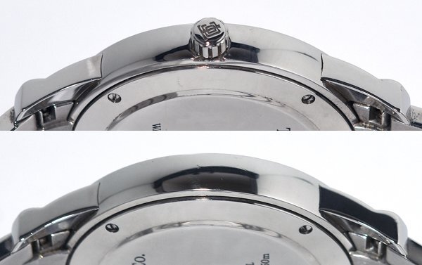 目立つ傷などはできる限り、画像、説明文に記載致しますが、見落としがある可能性もございます。 画像に載っている以外の傷がないことを保証するものではございません。 目視では認識できても、画像では伝わらない傷がある場合もあります。 現物を確認できない画像を通してのお取引であること、2次流通品、中古品という点をご理解頂きます様お願い致します。 ディスプレイによって実際の商品と画像の色の写り方が異なる場合がございますのでご注意ください。 日差はタイムグラファーで計測しておりますが、 機械式時計の場合、姿勢差などの影響により日差が大きくなることもあります。 記載している数値は参考値としてお考え下さい。 日差が大きいからという理由での返品や無償修理の対応は致しかねます。 機構によりタイムグラファーで計測できない場合は記載しておりません。 過去のOH(オーバーホール)歴は、付属品に記載がなければ分かりかねます。 電波時計の場合はフル充電されていない状態での発送となります。 輸送中の充電切れ等に関しましては当社では保証致しかねます。 商品受取後、充電切れ、不足の場合はまず充電をしてからご使用ください。 設定、ご使用方法等は各メーカーサイトをご覧いただくか、専用窓口等にお問い合わせくださいませ。 余りコマがある場合は記載しておりますが、ピンの状態、部品等は確認しておりません。 万が一、装着する際の部品が不足している場合は別途ご用意していただく必要があります。予めご了承くださいませ。 装着されているブレスレットのコマのピンの状態など、 分解しないと確認できない箇所については確認しておりません。 当社では防水検査は行っておりません。 記載する防水性については、「商品の機能、性能としての防水性」とお考え頂きます様、お願い致します。 各メーカーサイトでの保証、メンテナンス等の無償、有償サービスの個人情報等によるご登録については未確認です。 保証期間内にメーカー保証を受けられる際に有償、無償かは依頼される内容によって異なる為、各メーカーに直接お問い合わせくださいませ。 メーカーの判断となる為、当社では分かりかねます。ご了承くださいませ。 保証書が未記入の場合、保証有効の有無は分かりかねます。当社では対応しかねますので、予めご了承ください。 また保証書の譲渡手続き、名義変更などは行っておりません。 万が一、説明文と著しく状態が異なった場合は、修理等をされる前に当社にご連絡をお願い致します。 ご自身で修理、または店舗で修理等、手を加えられてからでは当社では対応致しかねますのでご了承ください。 当社保証期間を過ぎてからの動作などに問題が発生した場合については有料になってしまいますが、修理可能であれば弊社の提携時計店で修理させて頂きます。 お困りの際はお気軽にご相談くださいませ。 外観上でのランク付け、状態記載をさせて頂いております。 弊社の商品は全て中古現状での出品とさせて頂きます。 気になる点がありましたら、ご入札前にお気軽にお問い合わせ下さいませ。 上記記載をご理解、ご了承の上、ご入札をお願い致します。 |