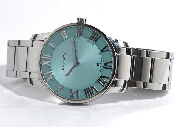 | ★箱・ギャラ付!美品!TIFFANY&Co. ティファニー Atlas アトラス 63452769 2ハンド デイト クォーツ メンズ★ |