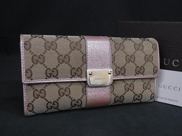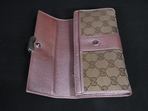 1円 GUCCI グッチ 233028 GG柄 GGキャンバス×レザー 二つ折り 長財布 ウォレット 札入れ 小銭入れ ブラウン系×ピンク系 GD0339