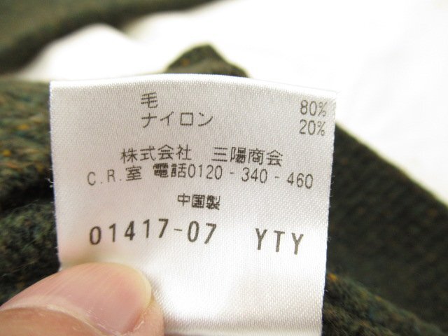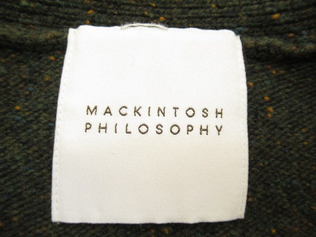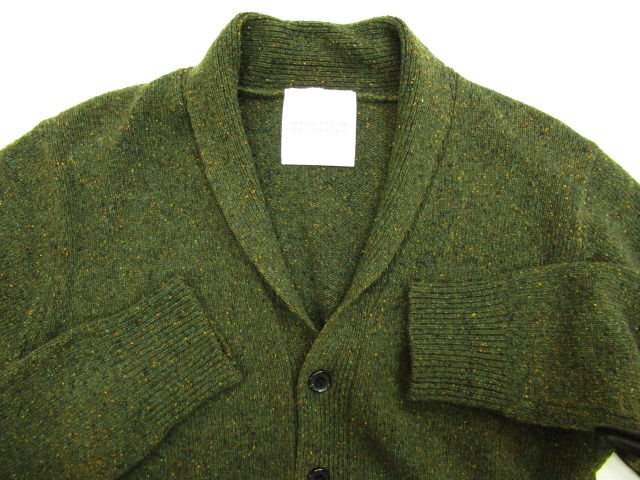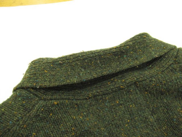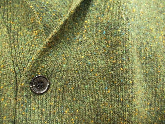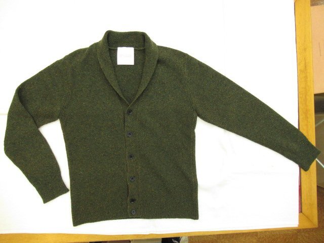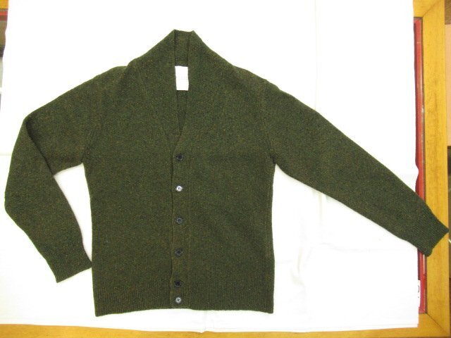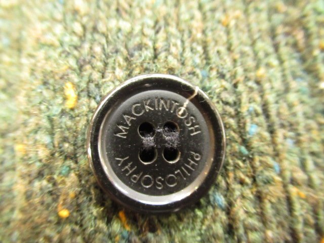 【色】 暗めの緑系(緑に少し黄、青、薄緑) 【サイズ】 表記:38 メジャー採寸: 約 肩幅44 袖丈61 胸囲50 丈62 【素材】 毛80 ナイロン20 【付属品】 なし 【参考定価】 -円 【商品説明】 三陽商会製のマッキントッシュ フィロソフィーの男性用のショールカラーのカーディガンです。 -------------------------------------- 【状態ランク】 外観:A 中側:A 【状態説明】 ・特に目立つような汚れやシミ、引っかきなども無くきれいです。 ・若干ですがかすかに香水の匂いがあります。ほとんど気にならない程度だと思います。 ・目立たない程度の小さな汚れ等はご了承下さい。 |