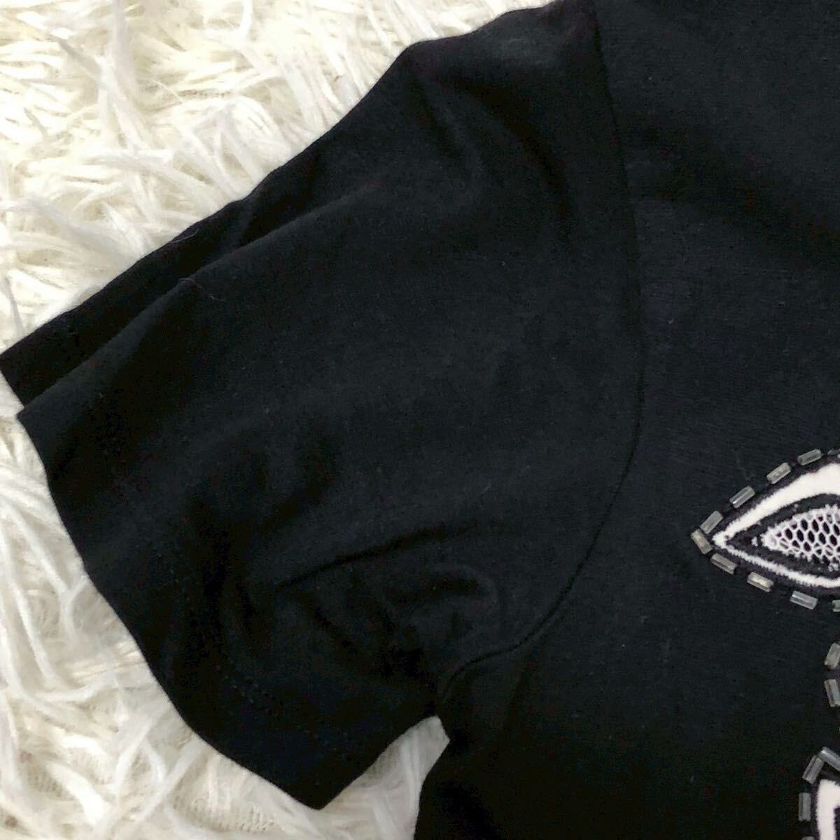 ETRO エトロ Tシャツ カットソー 黒 ブラック ビジュー ストレッチ性 刺繍 46サイズ XXXL相当 イタリア製 大きいサイズ レディース