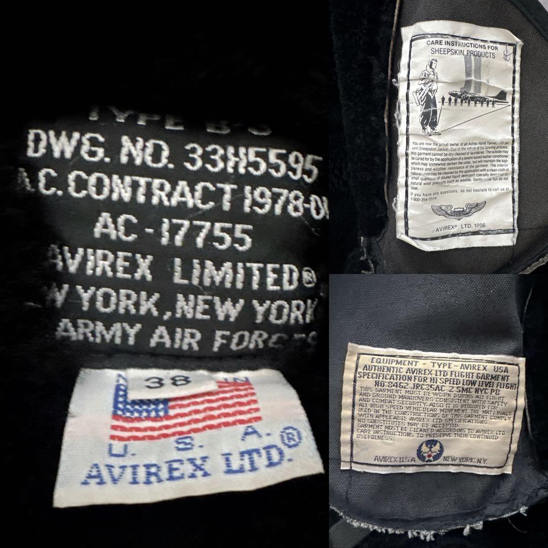AVIREX B-3 フライトジャケット レザージャケット ライダースジャケット 防寒 ヴィンテージ ビンテージ リアルムートン vintage 80s 90s