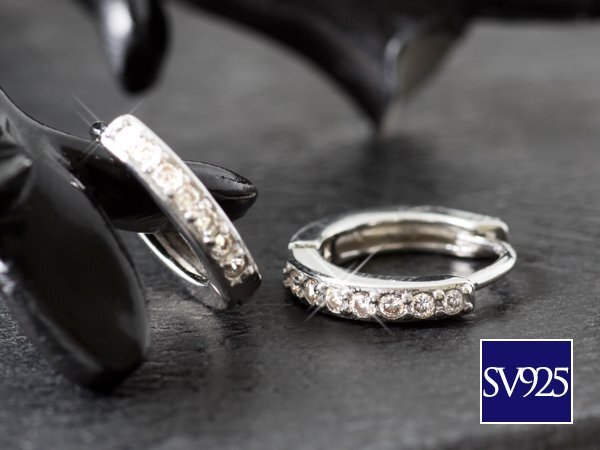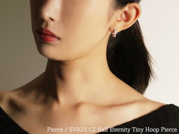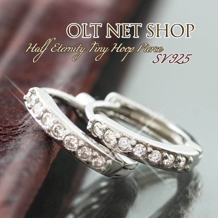 ピアス フープ レディース シルバー 小さい 小さめ 銀 プラチナ仕上げ ジルコニア / SV925 CZダイヤ ハーフエタニティタイニーフープピアス