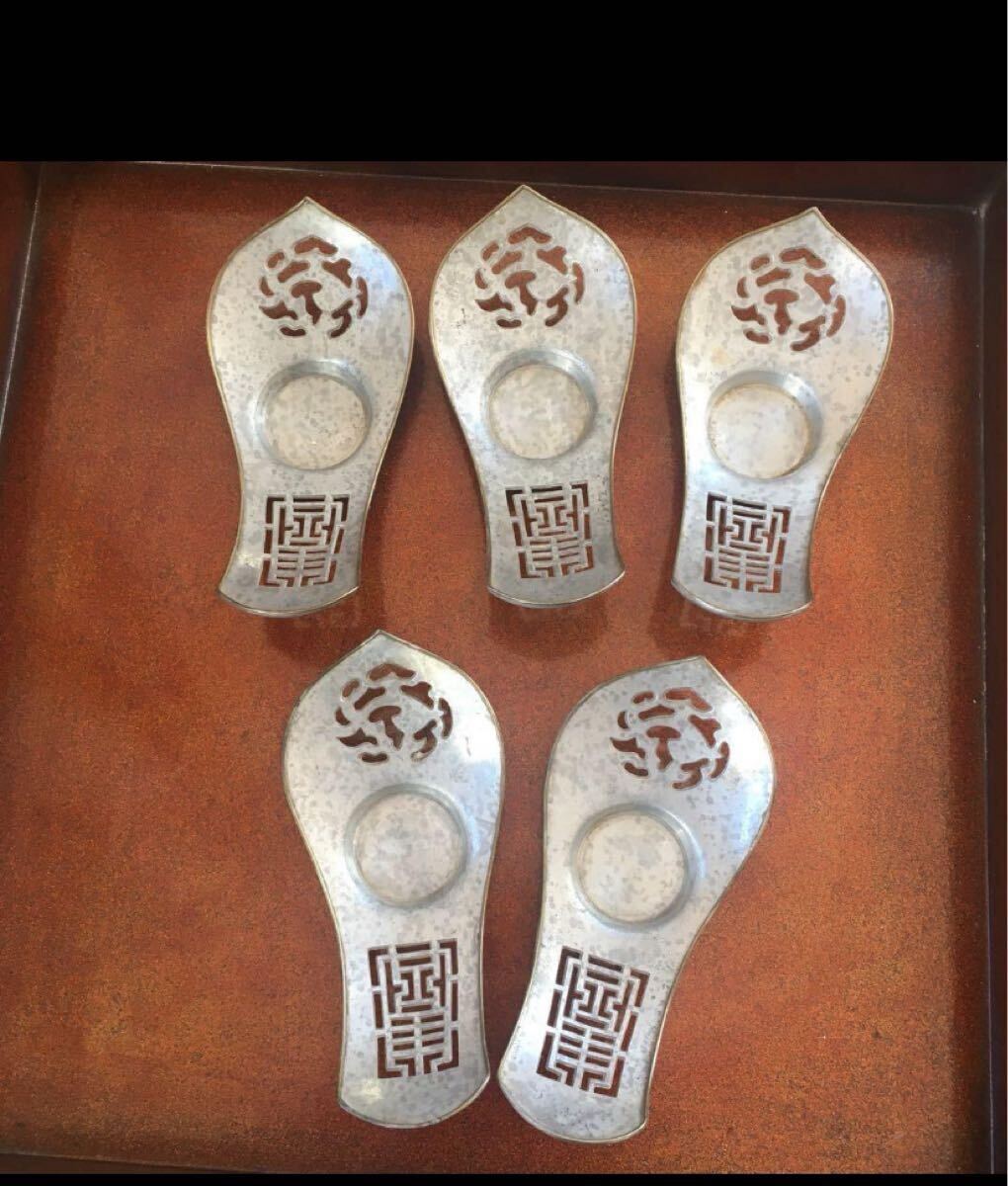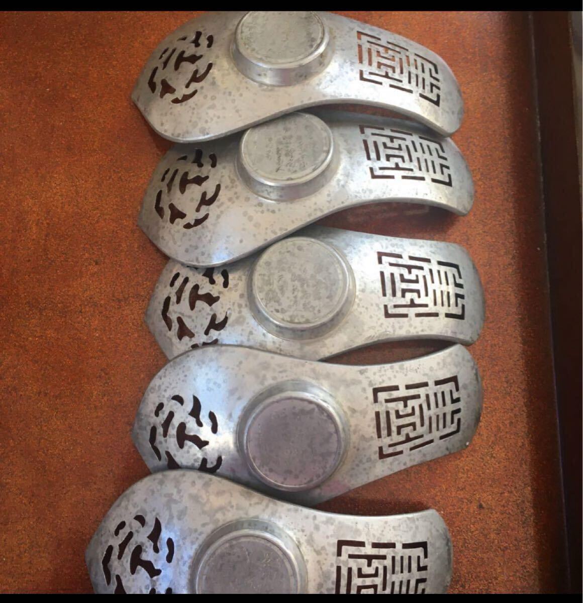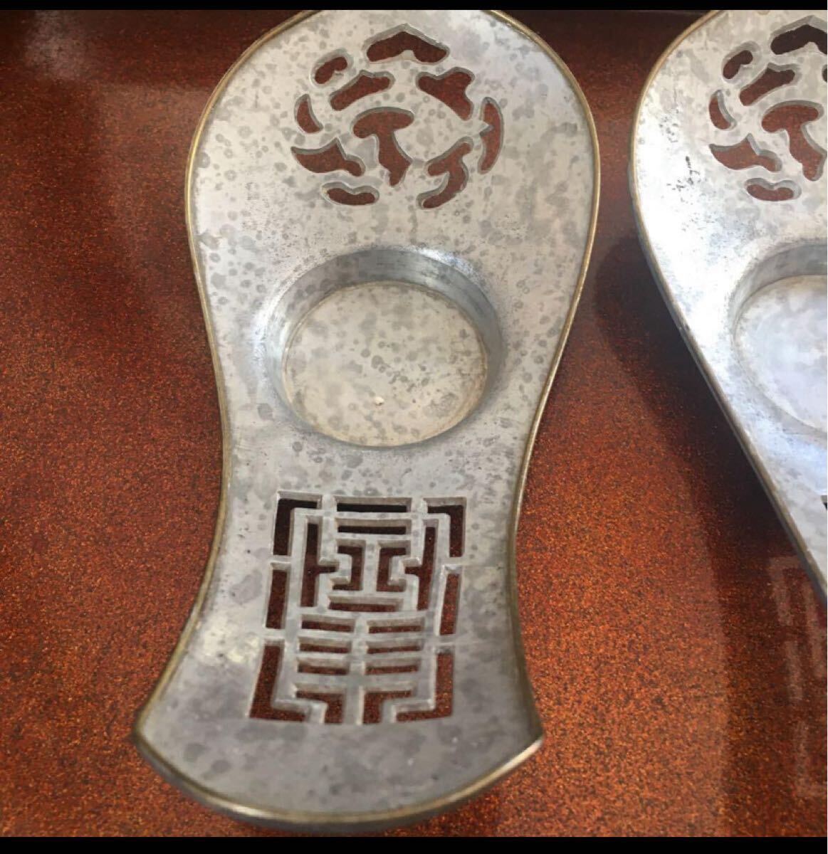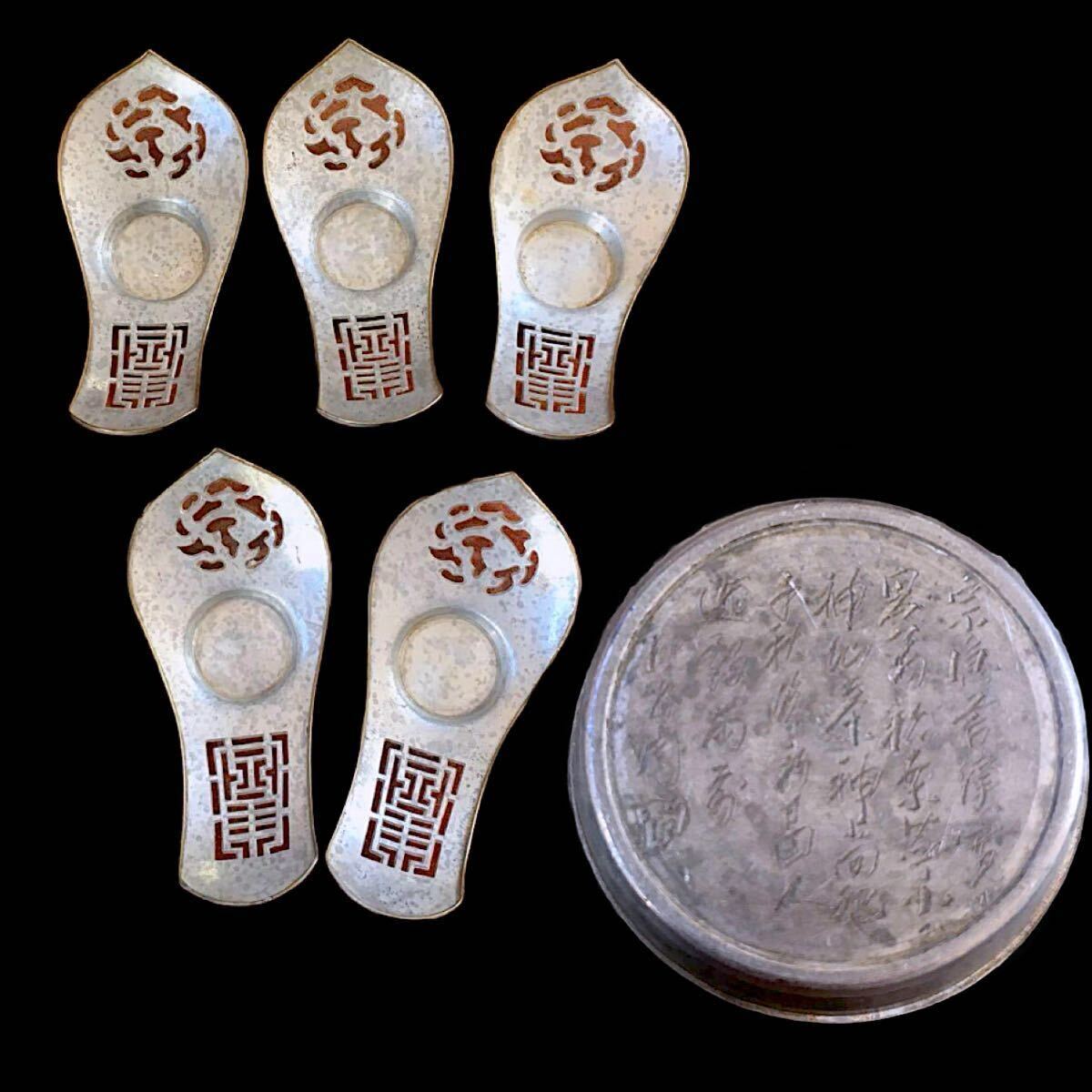 茶托 古錫 在銘 五客 七宝透 煎茶道具 唐物 在銘 茶道具 急須 時代物 古美術 金属工芸 茶器 骨董 古美術 斑紋 七宝透紋 茶托 古道具