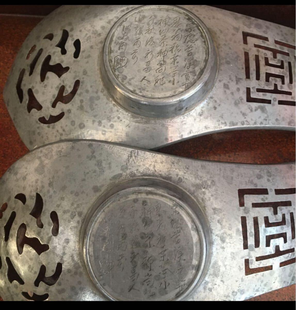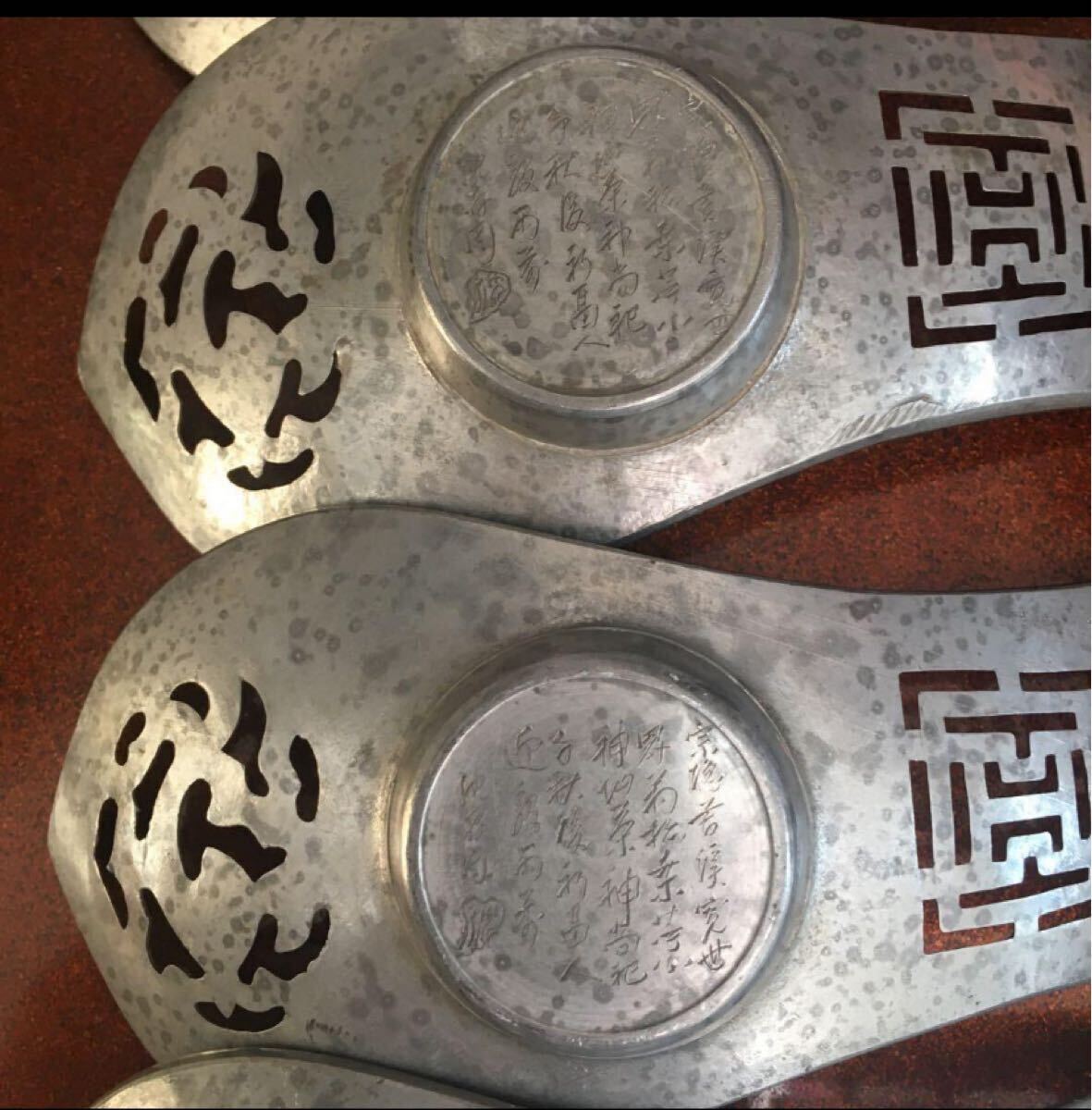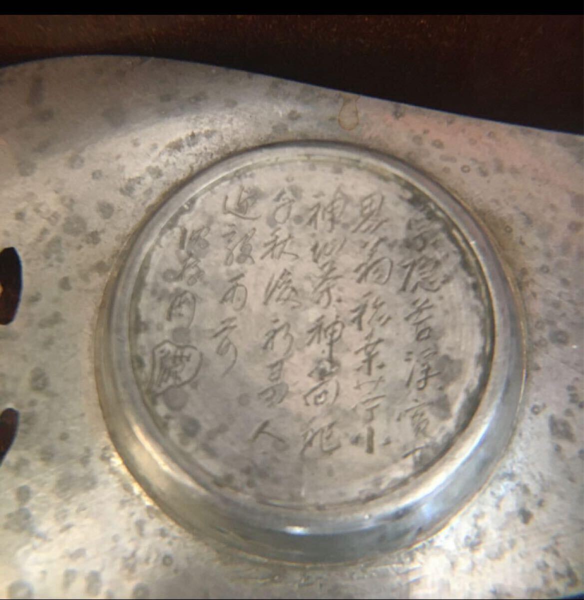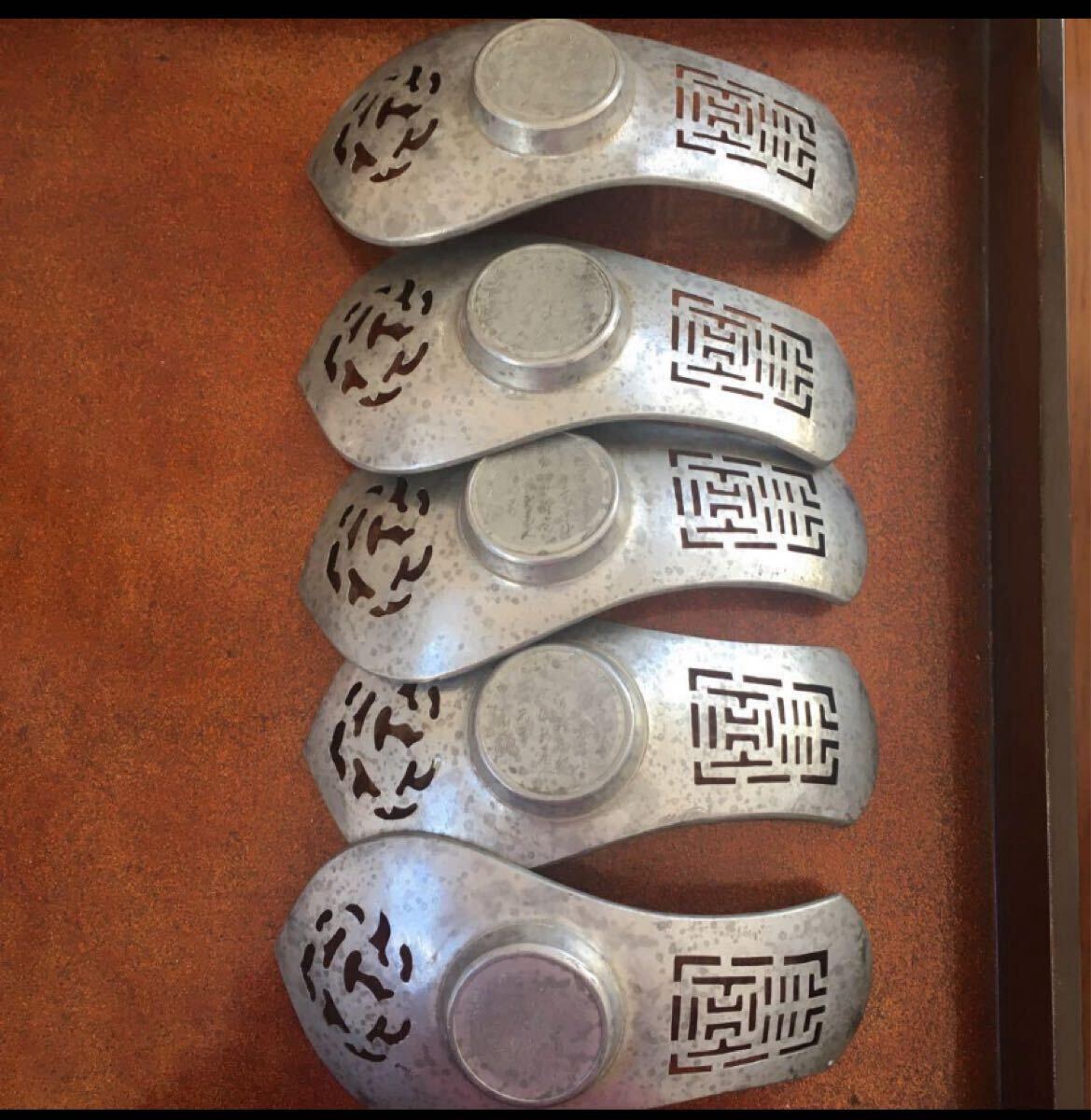茶托 古錫 在銘 五客 七宝透 煎茶道具 唐物 在銘 茶道具 急須 時代物 古美術 金属工芸 茶器 骨董 古美術 斑紋 七宝透紋 茶托 古道具