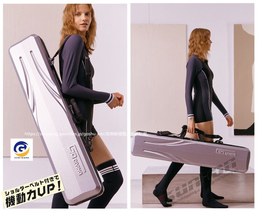【商品特徴】◇お手軽フィン専用ケース長めのフィン2セットでも収納可能!◇耐衝撃性能ケース構造。◇あらゆる方向からの衝撃を緩和。◇2WAY,手提げで携帯も便利。◇太めのショルダーストラップで肩も痛くなりにくい。【商品スペック】[素 材]:優れた耐久性特殊PC[サイズ]:「外寸法(cm) 110×14×22」「内寸法(cm) 108×12×21」[重 さ]:約2.4kg[ご注意]:■本体の表面にコーティング加工の保護用シールが運送途中で、摩損される場合は御座います。■ご使用にも差し支えございません。また不良品では御座いませんので、御了承下さいませ。■上記状況につき、交換/返品/キャンセル/クレームはお受けできません。 御了承の上、御購入願い致します。