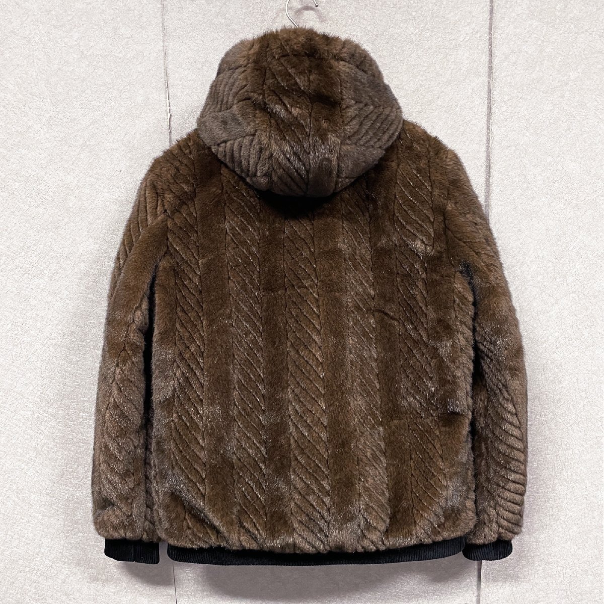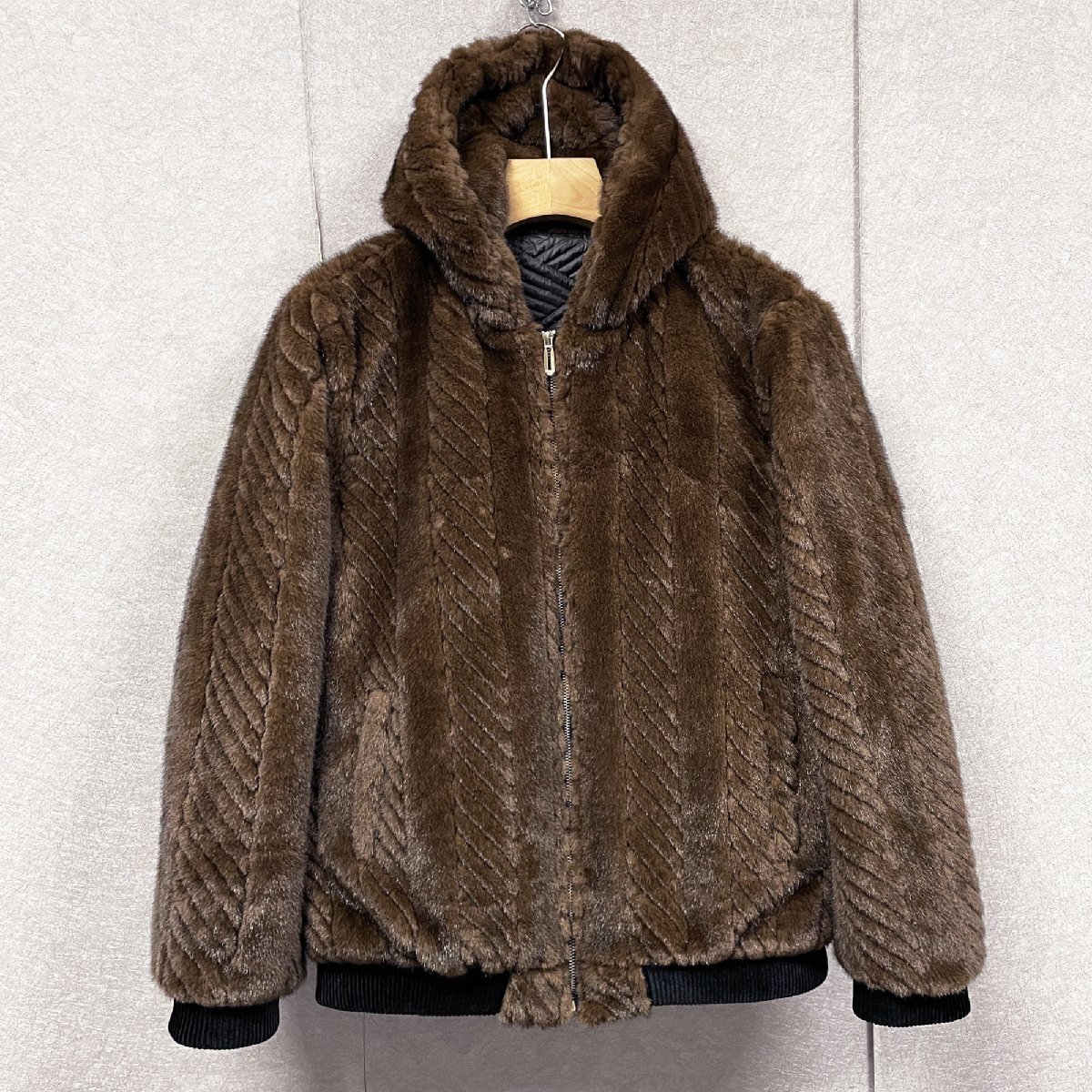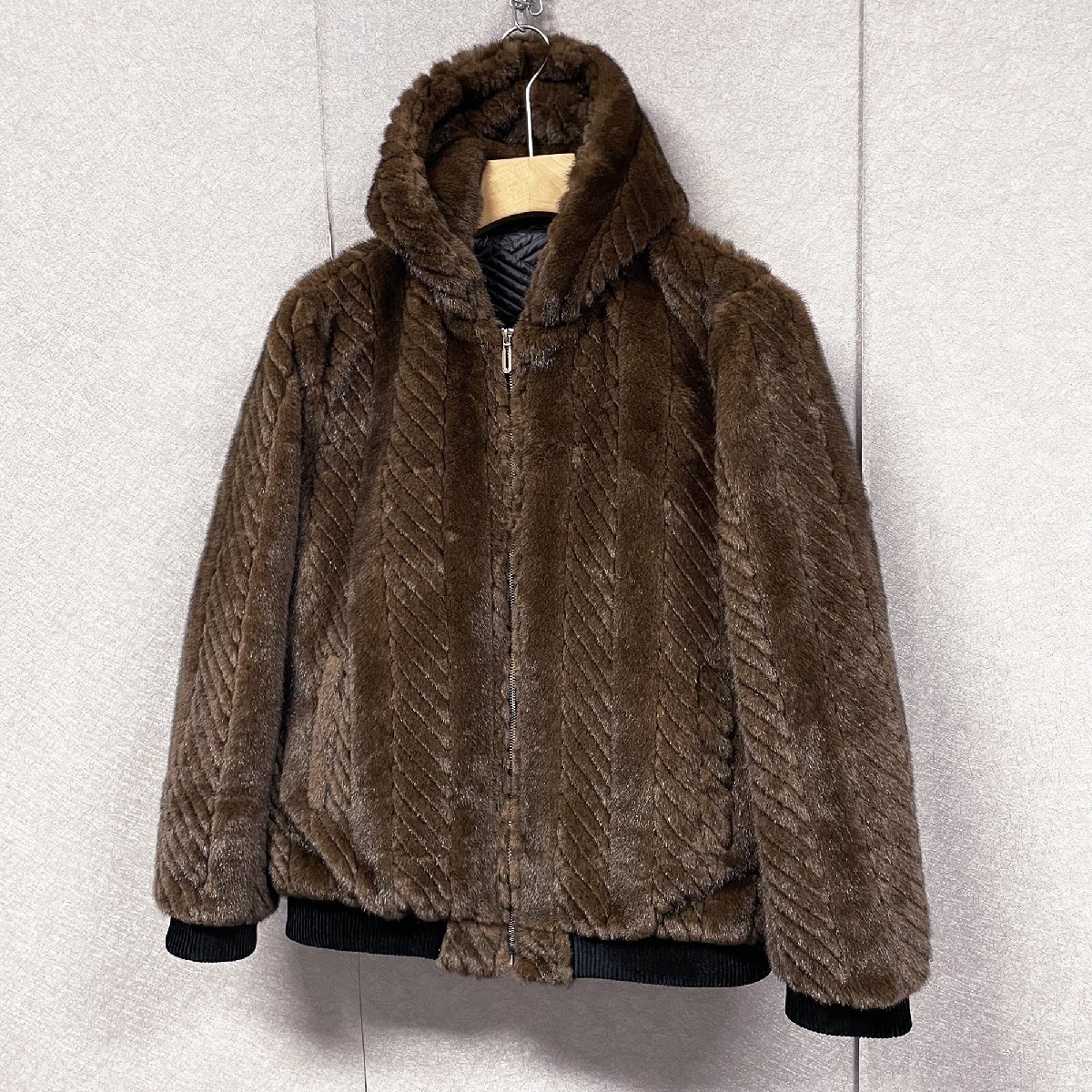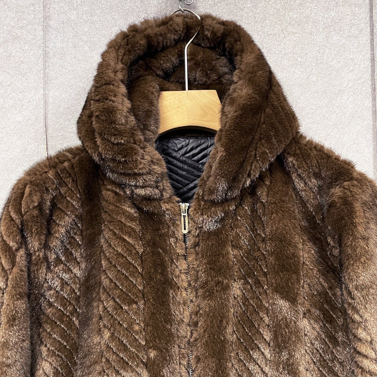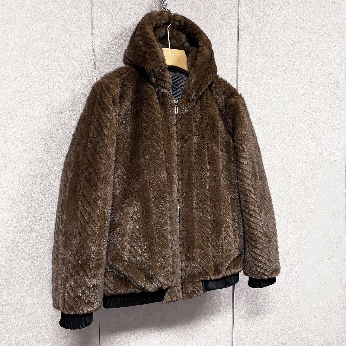ファーコート イタリア製造 高級ミンク/カシミヤ混 暖かい ソフト 快適 厚手 防寒 艶 毛皮コート ジャケット フード付き アウター SIZE:XL