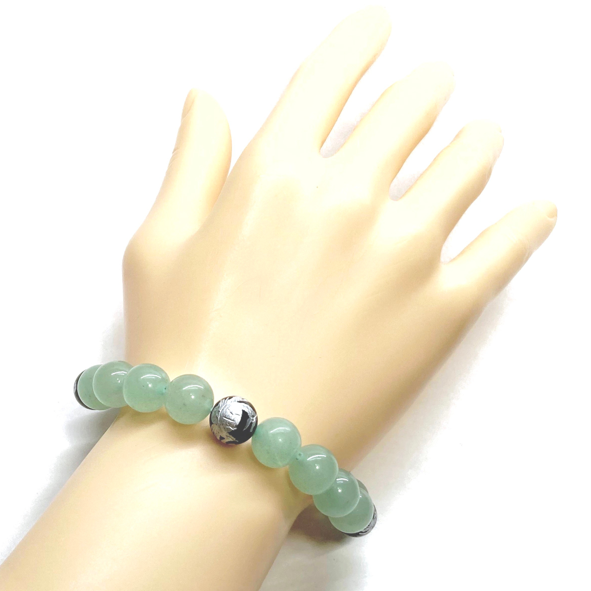 10mm 四神獣銀彫オニキス×アベンチュリン パワーストーン ブレスレット天然石 運気上昇 開運 金運 恋愛運 青龍 白虎 玄武 朱雀 ☆