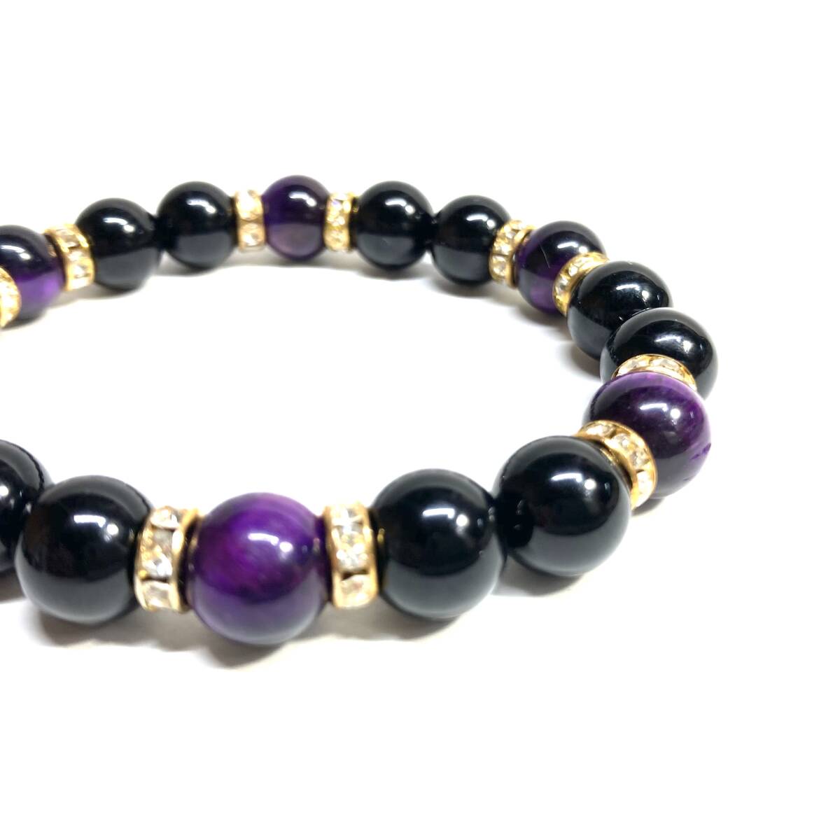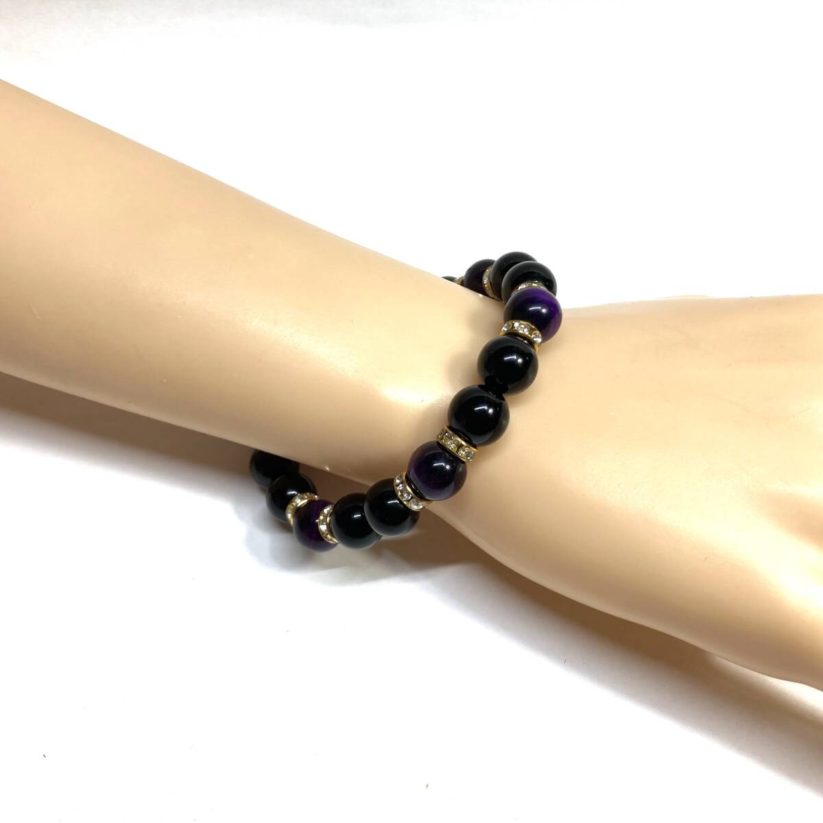 こちらは、モリオンとパープル タイガーアイを組み合わせたパワーストーンブレスレットです。間にはロンデルを挟み高級感あるデザインに仕上げております。石大きさは腕にも馴染みやすいように10mm玉で内径約18cm(伸可能)です。(サイズ変更の場合は取引ナビにてご連絡をお願いします。) 数に限りがございますので気になる方はお早めにどうぞ。