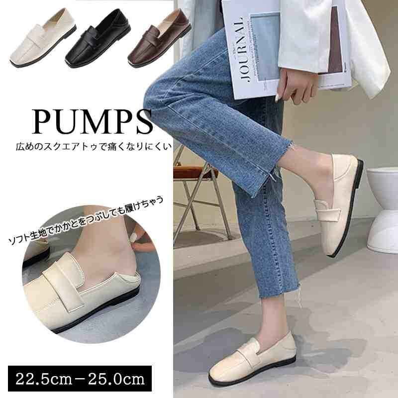広めのスクエアアトゥで痛くなりにくいパンプス