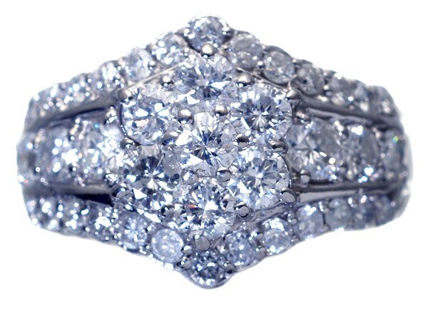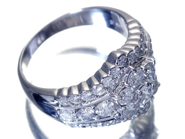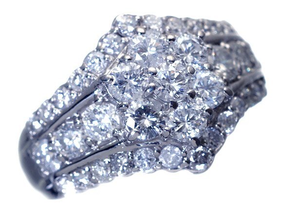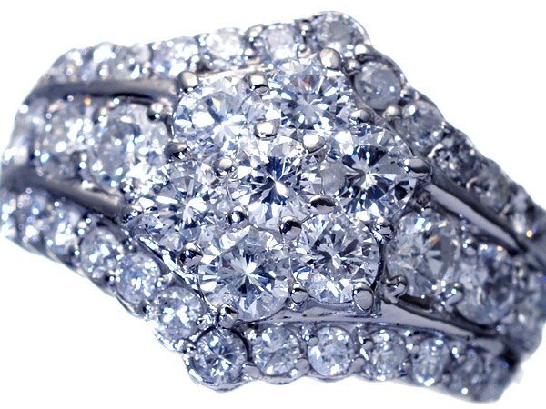 超極上の逸品!圧巻の輝き!超極上天然ダイヤモンド総計2.03ctを圧倒的ボリュームでフラワーセッティングデザインした、超高級Pt900リングを1円から大赤字覚悟で特別大放出させて頂きます!