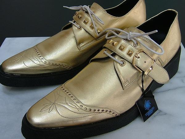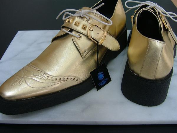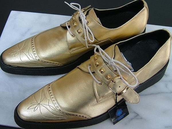 ■希少な厚底シューズ ゴージャスなゴールド色でストラップベルトのスタッズもゴールドです(同モデルの黒エナメルとシルバーはそれぞれ別に出品中です)