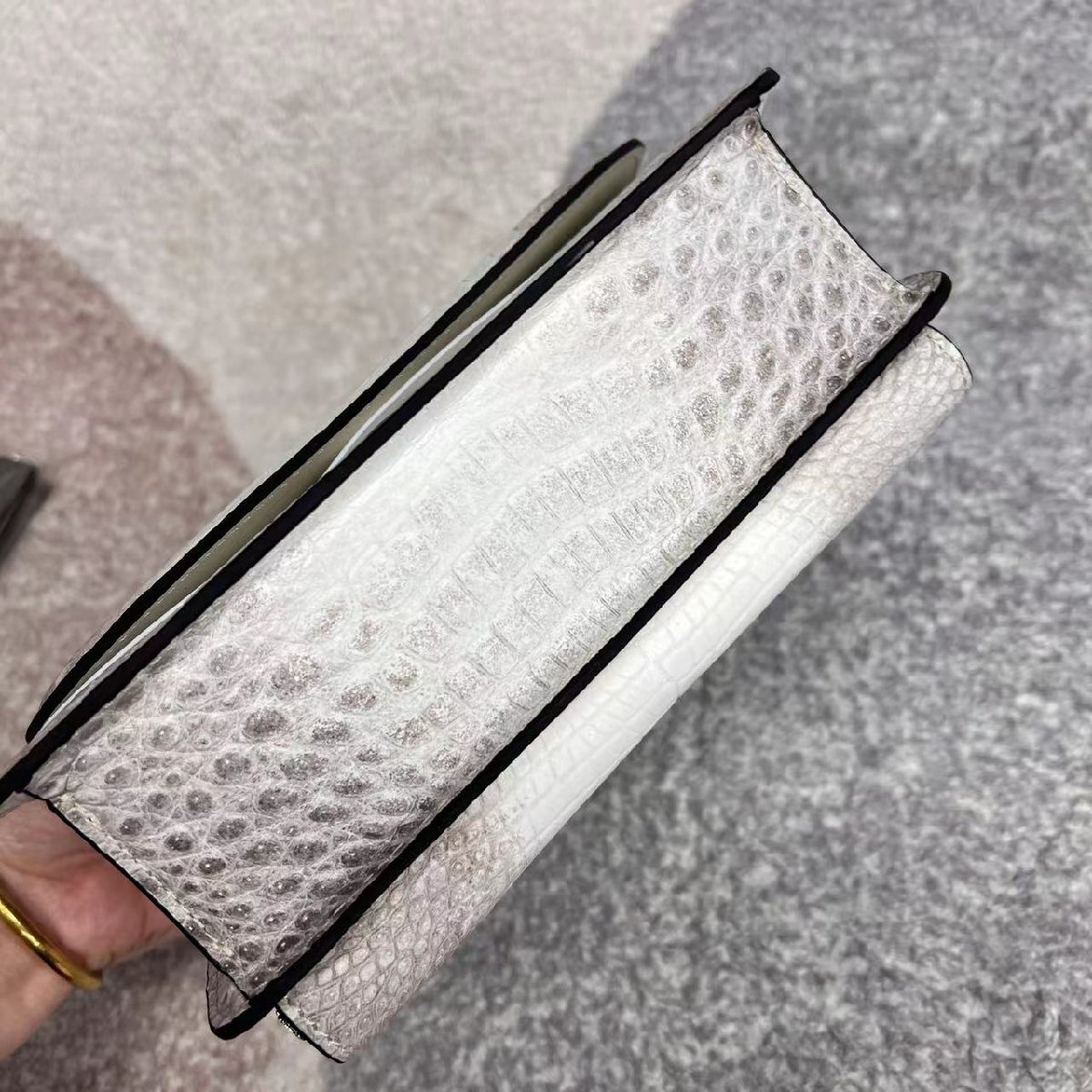 クロコダイルレザー ショルダーバッグ ヒマラヤホワイト 2WAYバッグ レディスバッグ 高級鰐革 腹革センター取り