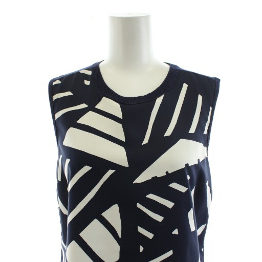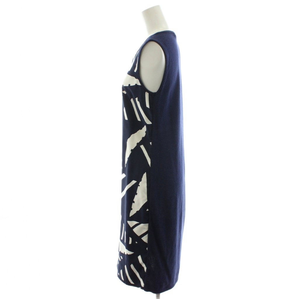 ローレンラルフローレン LAUREN RALPH LAUREN ワンピース ノースリーブ ひざ丈 切替 モダール混 XS 紺 ネイビー 白 ホワイト /AN1