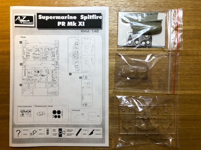 1/48 AZ MODEL SUPERMARINE SPITFIRE P.R. Mk.XIの未塗装・未組立キットです。
