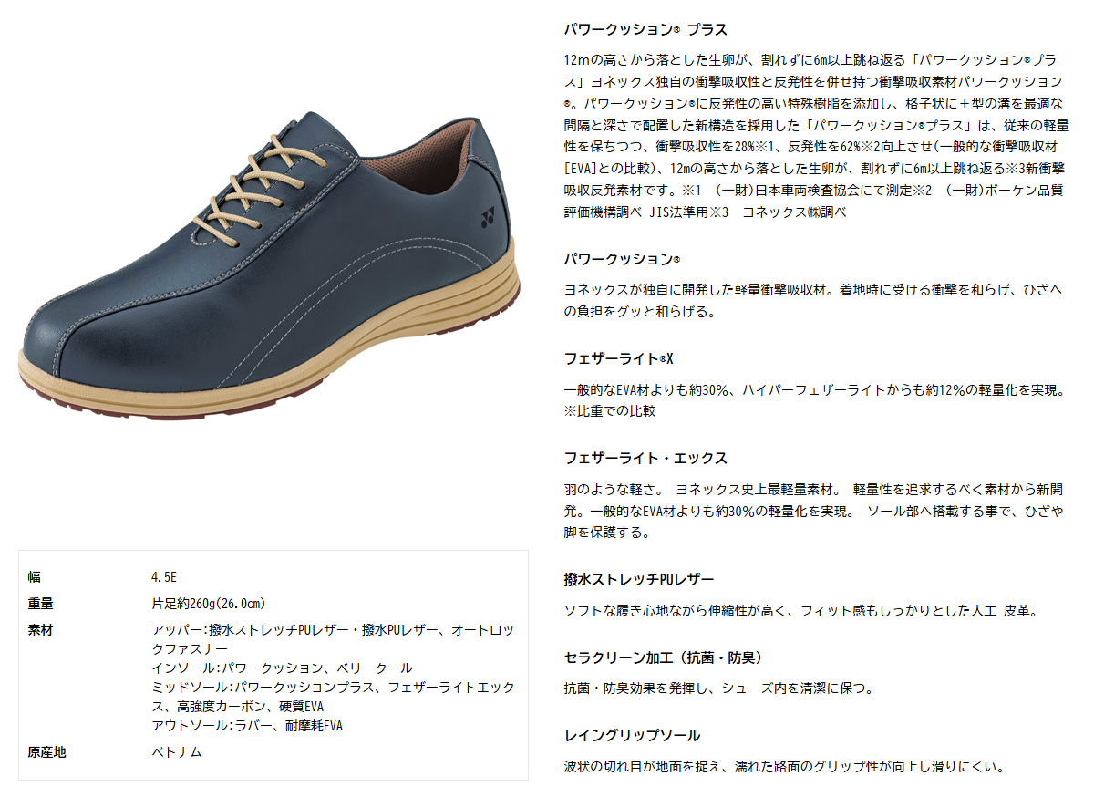 M118W ネイビーブルー 26.5cm ヨネックス パワークッション ウォーキングシューズ 男性用 メンズ 靴 4.5E YONEX ファスナー