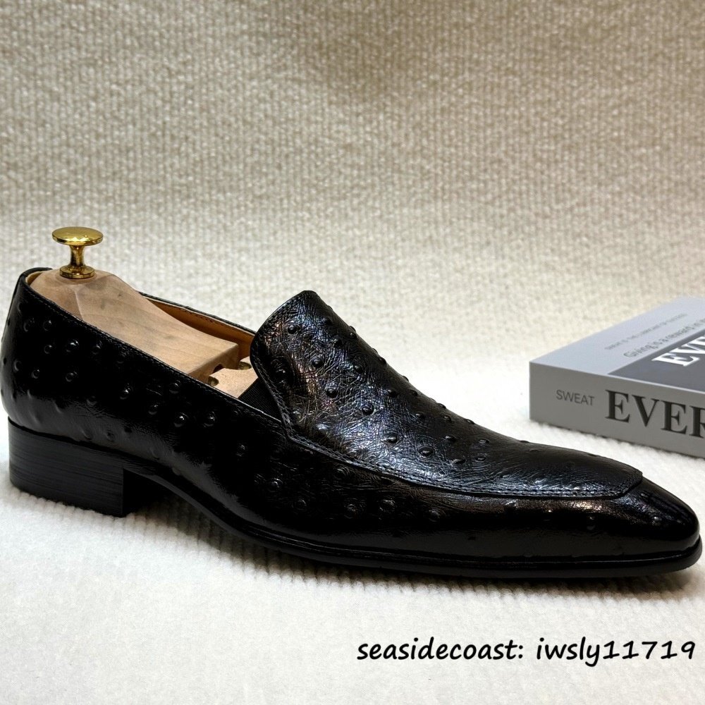 超美品★ビジネスシューズ メンズ レザーシューズ 高級牛革 紳士靴 職人手作り 本革 ドレスシューズ ローファー 新品 革靴 ブラック 24.5cm