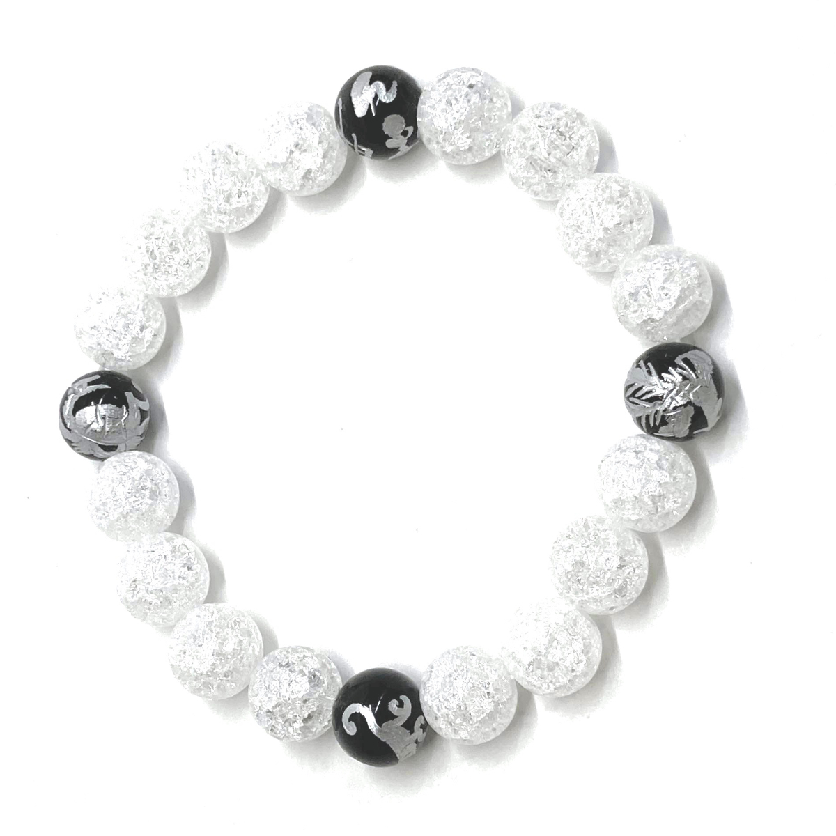 10mm 四神獣銀彫オニキス×クラック水晶 パワーストーン ブレスレット天然石 運気上昇 開運 金運 恋愛運 青龍 白虎 玄武 朱雀 ☆