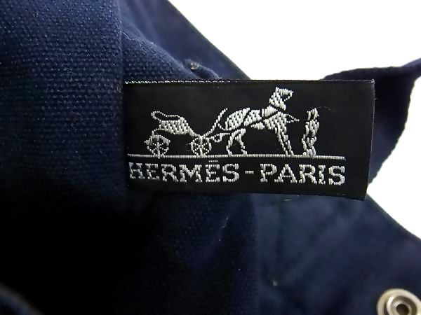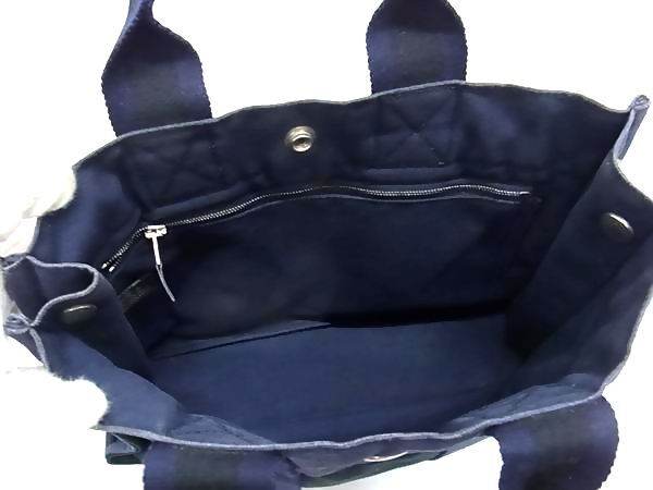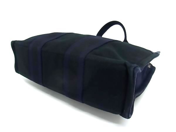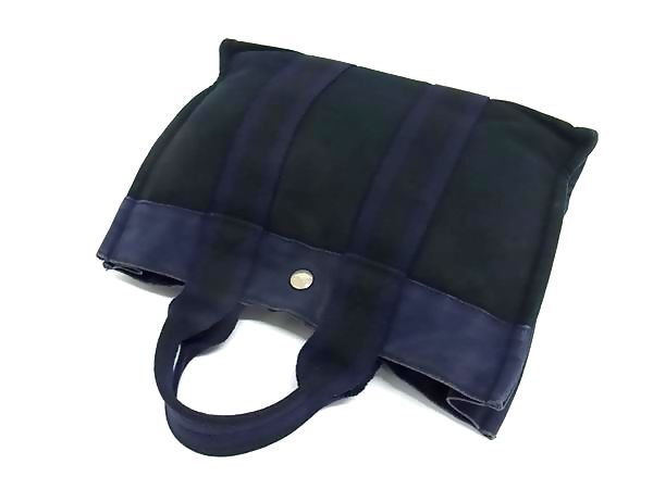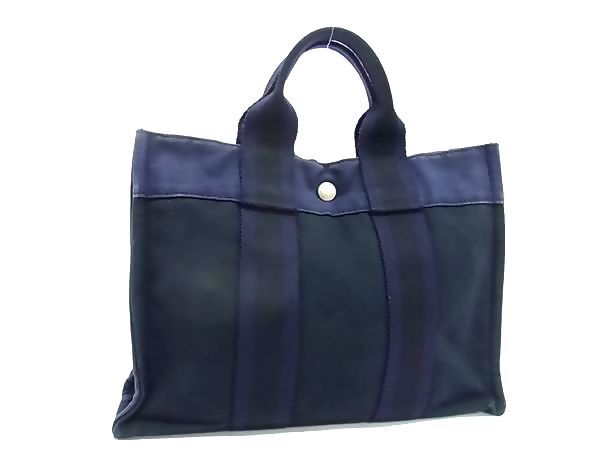 1円 HERMES エルメス フールトゥPM キャンバス ハンドバッグ トートバッグ レディース メンズ ブラック系×ネイビー系 GC0783