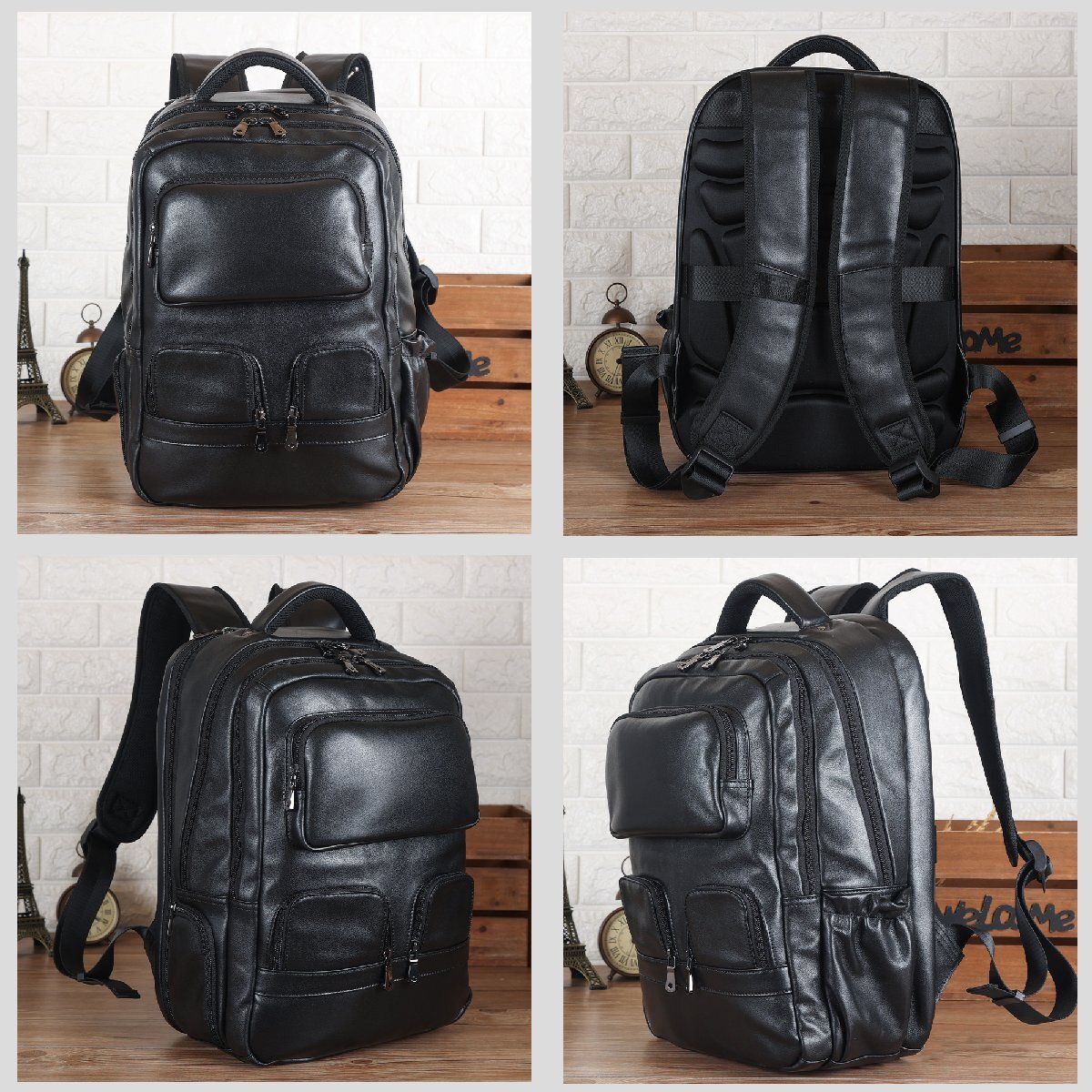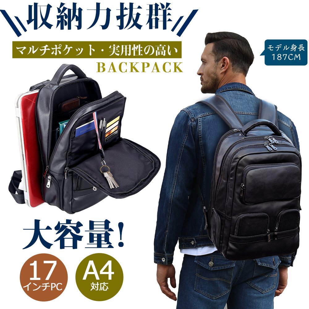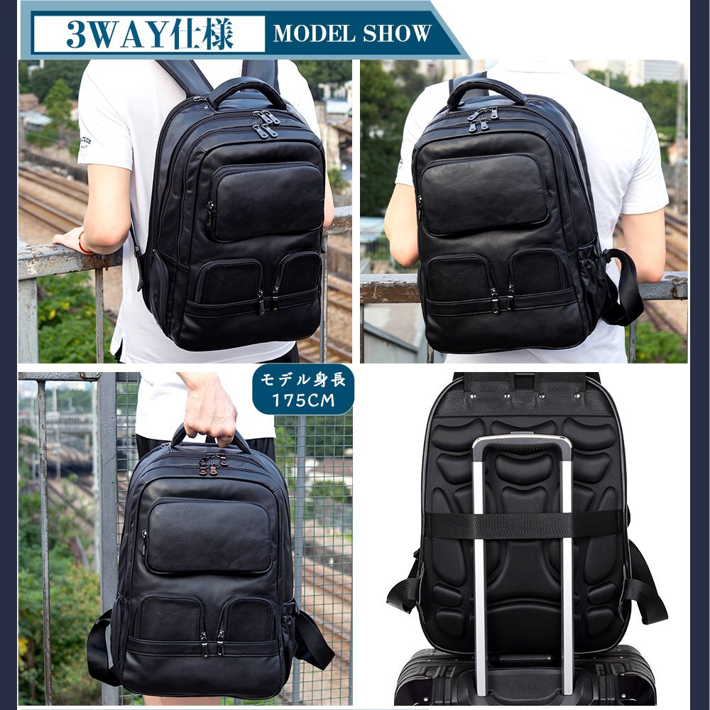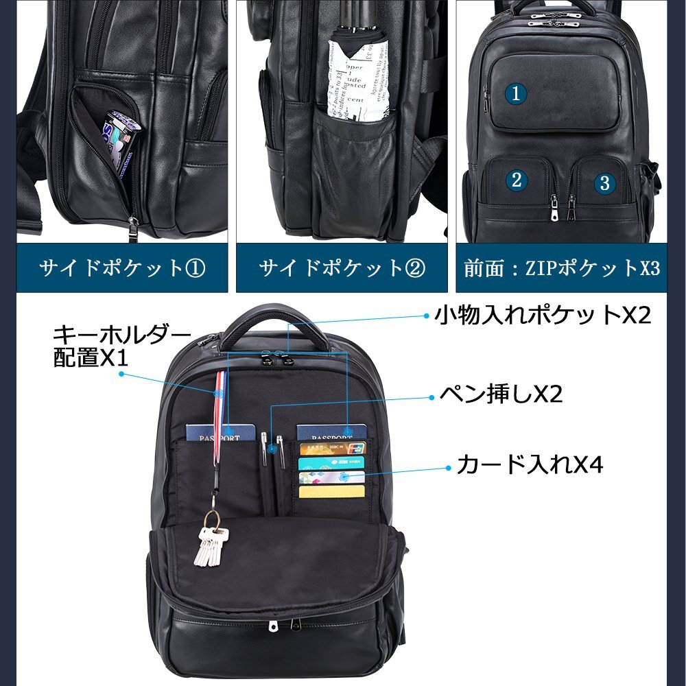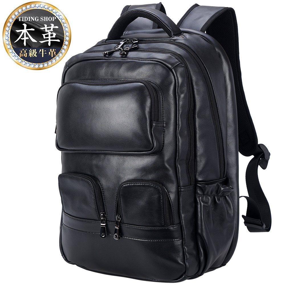 TIDING 大容量 本革 リュックサック バックパック キャリーオン アウトドア 旅行鞄 トラベルバッグ 黒