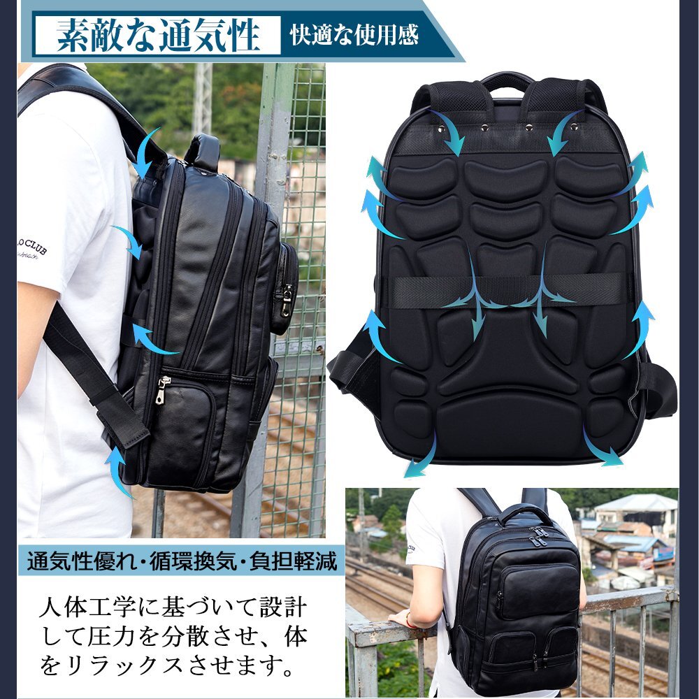 リュックの背中とストラップは通気性とクッション性のあるエアーメッシュ生地を採用されて熱の発散と汗や蒸れを解消し、快適な背負い心地を提供できます。また背面にはキャリーケースのハンドルに付けられるベルトがあり、旅行や出張時のサブバッグとして持ち運べます。快適に旅行を楽しむために欠かせないビジネスリュックです。