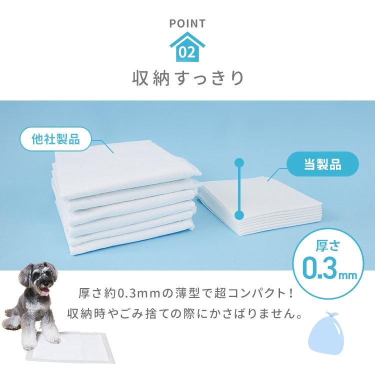 6層構造&ポリマーがしっかり吸水し、おしっこの逆戻りも少なく、裏漏れを防ぎます。 さらにシーツの四隅に圧着加工を施し、サイド漏れを防止します! 薄型でコンパクトなので、収納時やゴミ捨ての際にかさばりません。 製造後にUV除菌を行っているので、安心してご使用いただけます。 シートの色はホワイトなので、健康状態の目安になるおしっこの色もチェックしやすい! ケージの中に敷いたり、ネコ用トイレとしても最適です♪ 【商品仕様】 サイズ:(約)45cm×33cm 吸水目安:(約)120cc 枚数:1200枚 (犬用トイレ 犬トイレ イヌ いぬ ワンちゃん 猫用トイレ 猫トイレ ネコ ねこ ねこちゃん 多頭飼い 無香料 抗菌 使い捨て まとめ買い 人気 おすすめ 安い WEIMALL) |