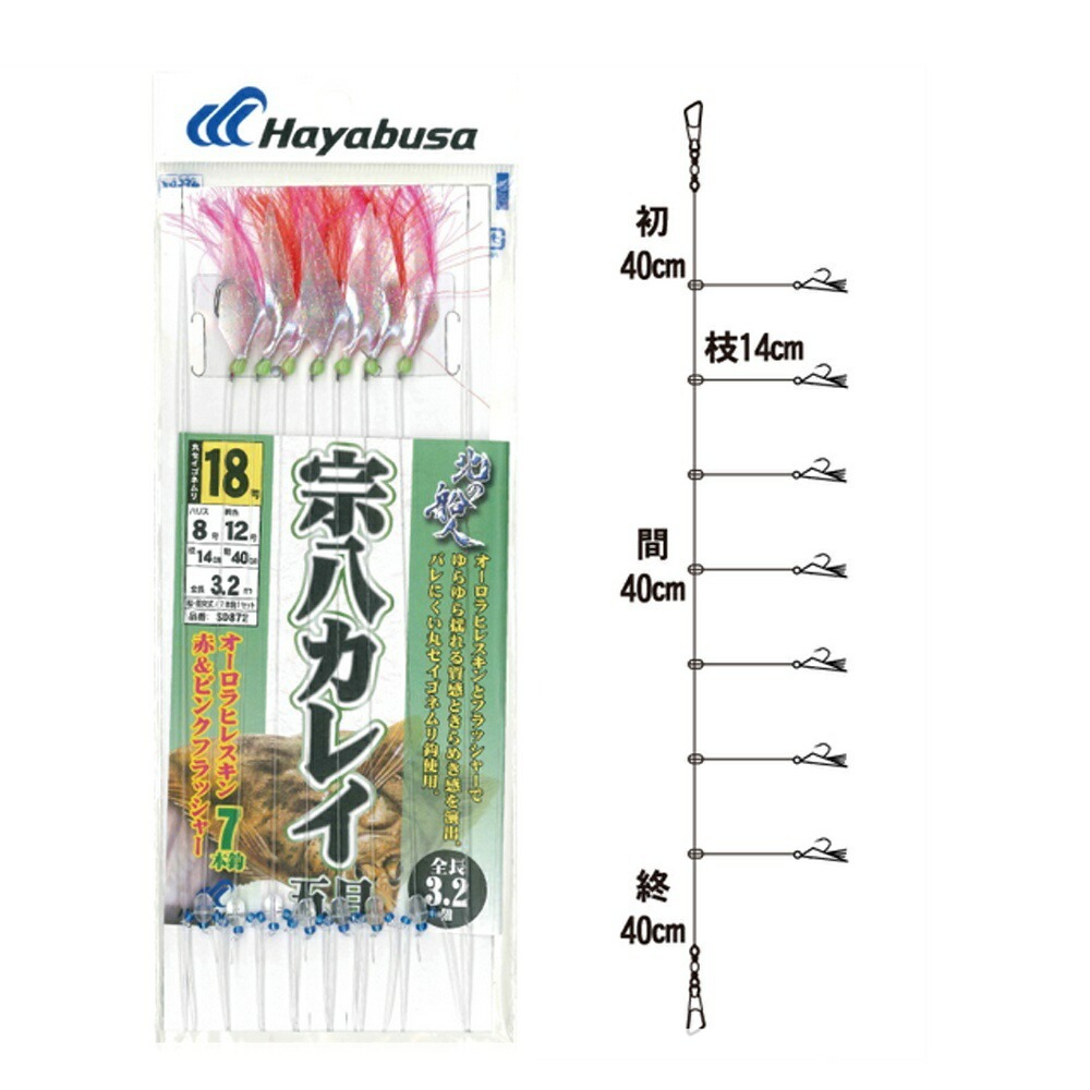 ハヤブサ SD872 宗八カレイ オーロラ餌板 丸セイゴネムリ 7本鈎 18-8(haya-165569)[M便 1/10]