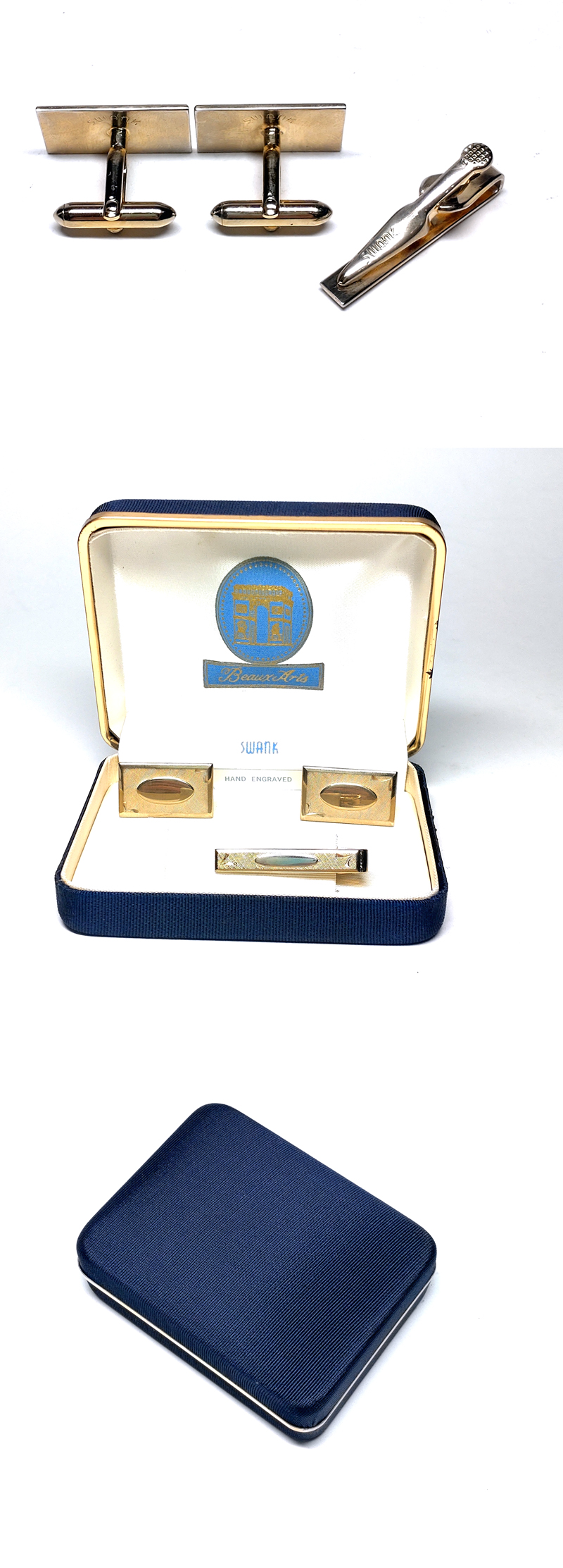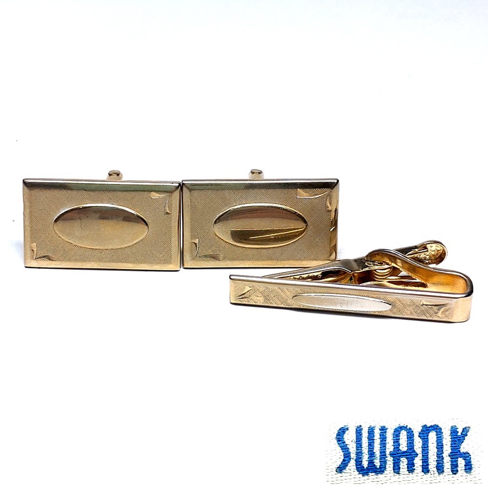 商品名 SWANK スワンク ゴールド 手彫り スクエア カフス&ショートタイピン 箱付