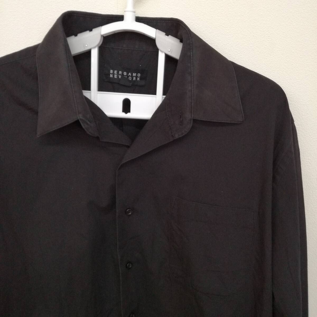 中古 アメリカ古着 BERGAMO NEWYORK ベルガモニューヨーク 長袖シャツ メンズ Lサイズ 黒 ブラック カジュアル おしゃれ 送料無料