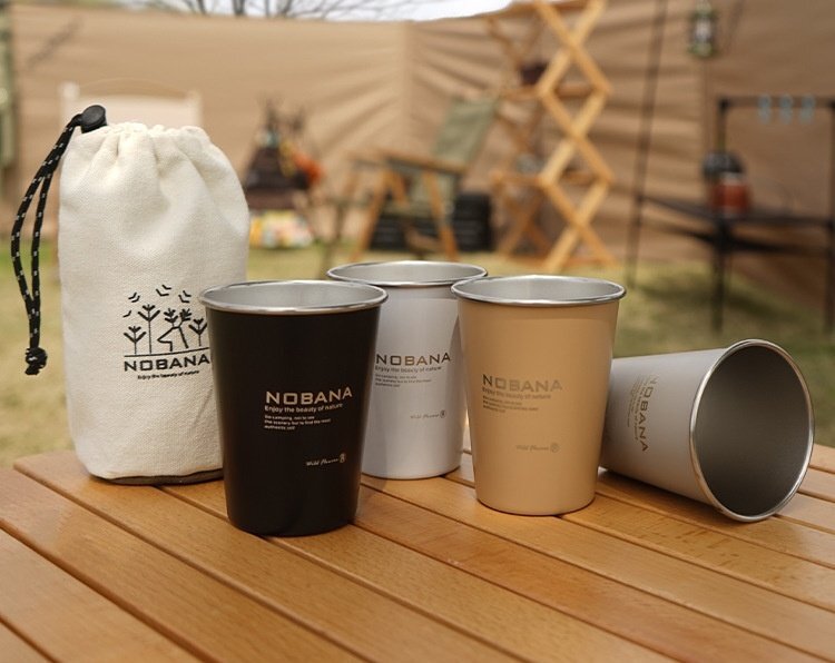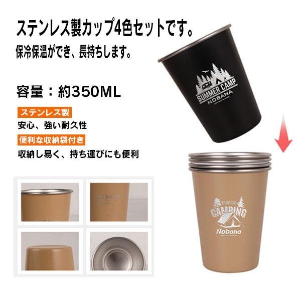 ステンレスカップ マグカップ 4色セット収納袋付き 持ち運び便利 保冷保温 長持ち 軽量 キャンプ アウトドア 306