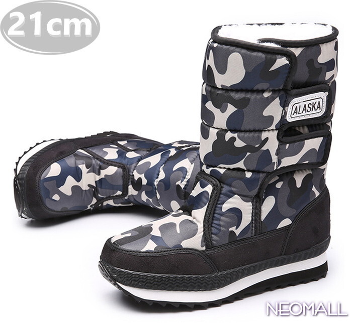 キッズ スノーシューズ 【953】 21.0cm グレー ムートンブーツ スニーカー ウィンターブーツ 裏起毛 防水 防寒 防滑 冬用靴 綿靴