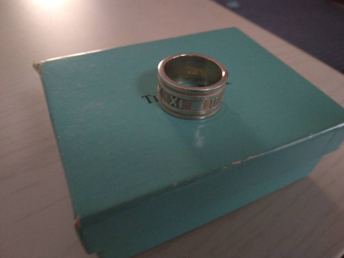 ティファニーのリングを出品します。サイズは大体18号位です。袋、箱付きです。幅は1.2㎝位です。低価格出品ですので、ノークレームノーリターンでお願いします。