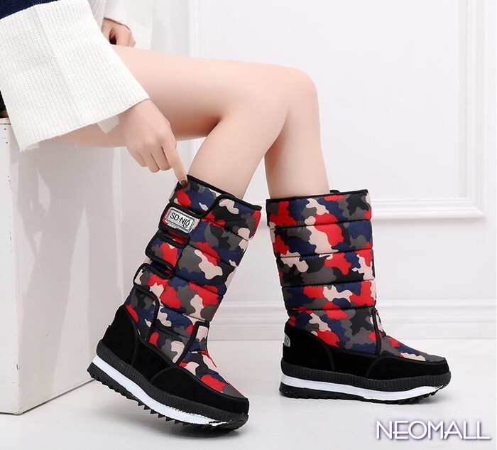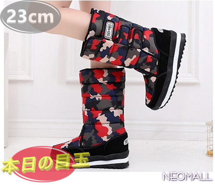 レディース スノーシューズ 【867】 23.0cm 迷彩レッド ムートンブーツ スニーカー ウィンターブーツ 裏起毛 防水 防寒 防滑 冬用靴 綿靴
