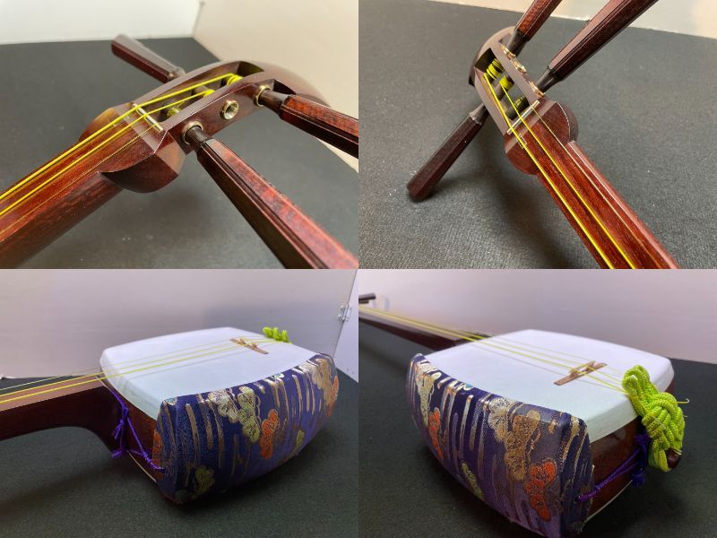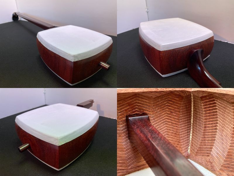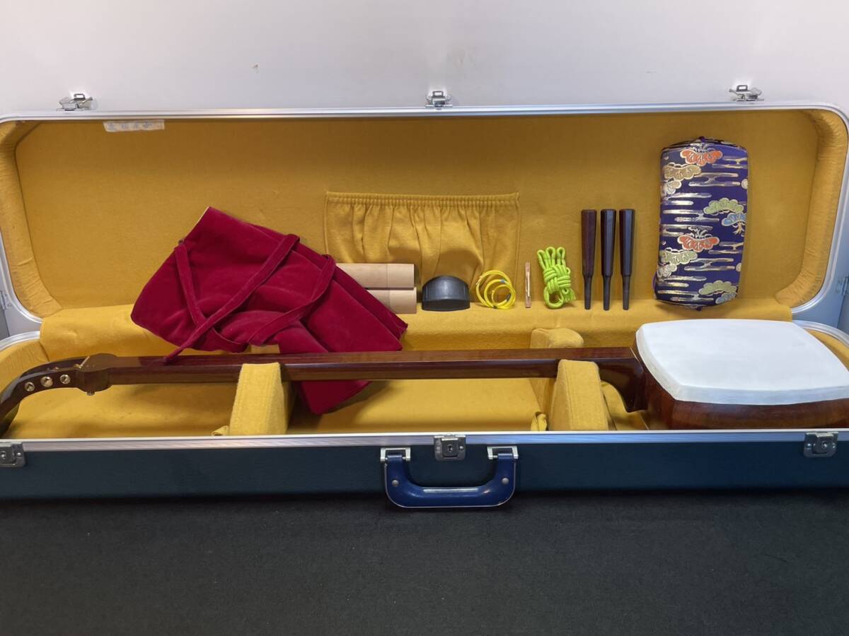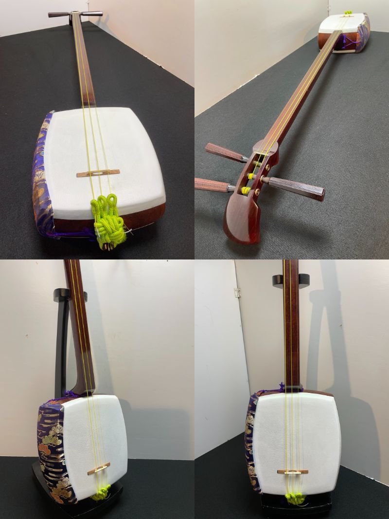 ■極上美品■中棹三味線☆金ホゾ☆綾杉胴☆両面皮張り替え/