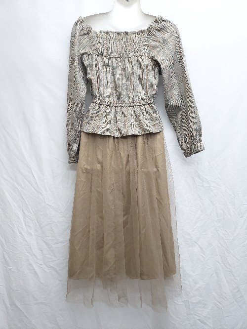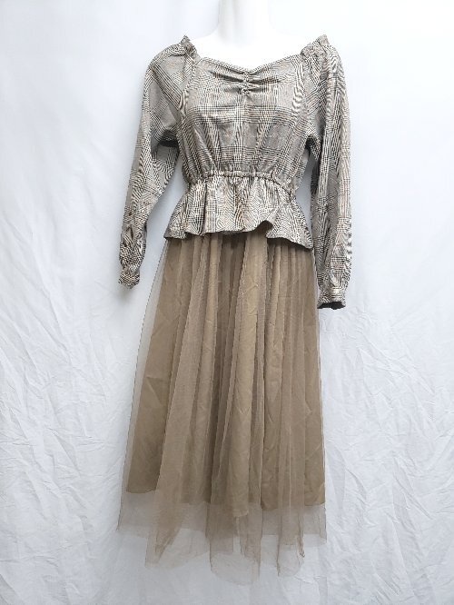 ◇ MAJESTIC LEGON マジェスティックレゴン チェック 長袖 膝下丈 ワンピース サイズM ブラウン マルチ レディース P