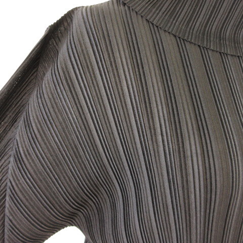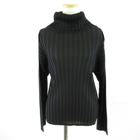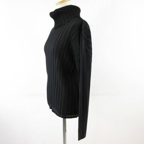 プリーツプリーズ PLEATS PLEASE イッセイミヤケ カットソー 長袖 タートルネック プリーツ 黒 3 *T317 レディース