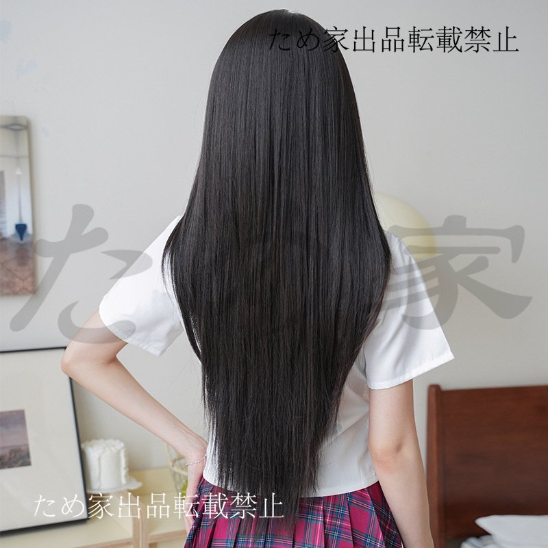 新品人毛 ブラックティーブラウン ロングストレート 姫風前髪付きウィッグ 落ち着いた印象に つむじ部分手植え 自然に見えますフルウィッグ