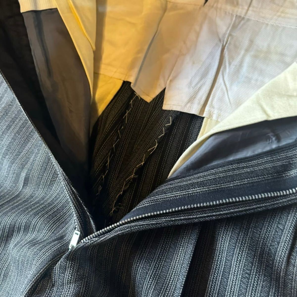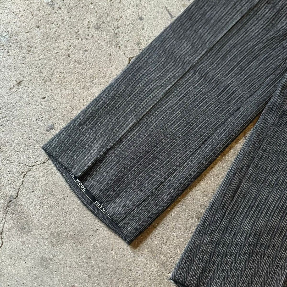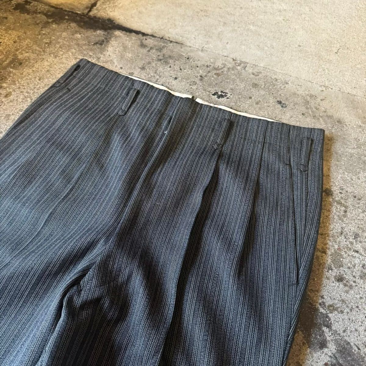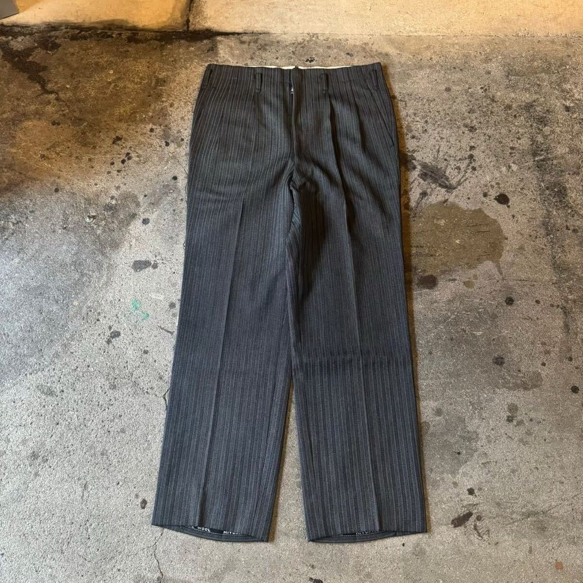 60s Japan Vintage ドレスパンツ ストライプ 日本製 御幸毛織 タックパンツ スラックス ブラック ツータック 織柄 50s 40s W84cm