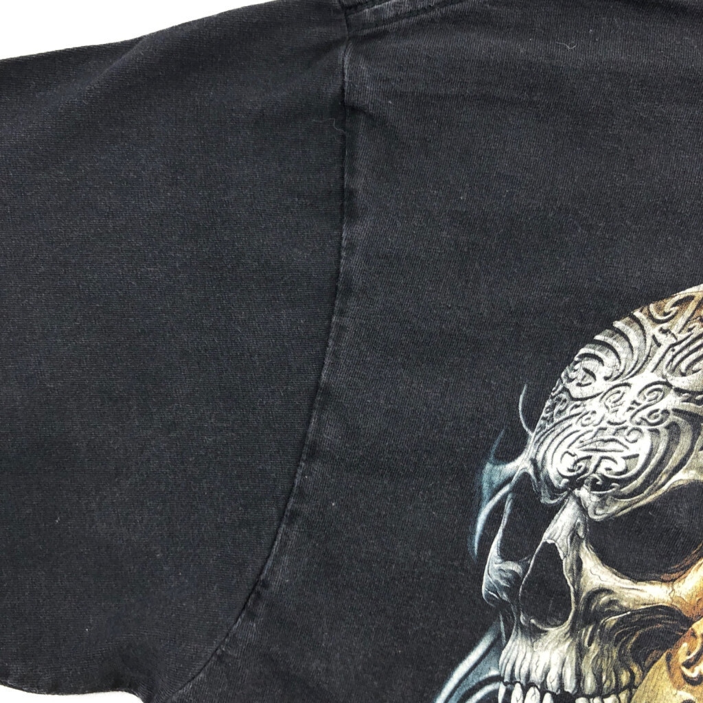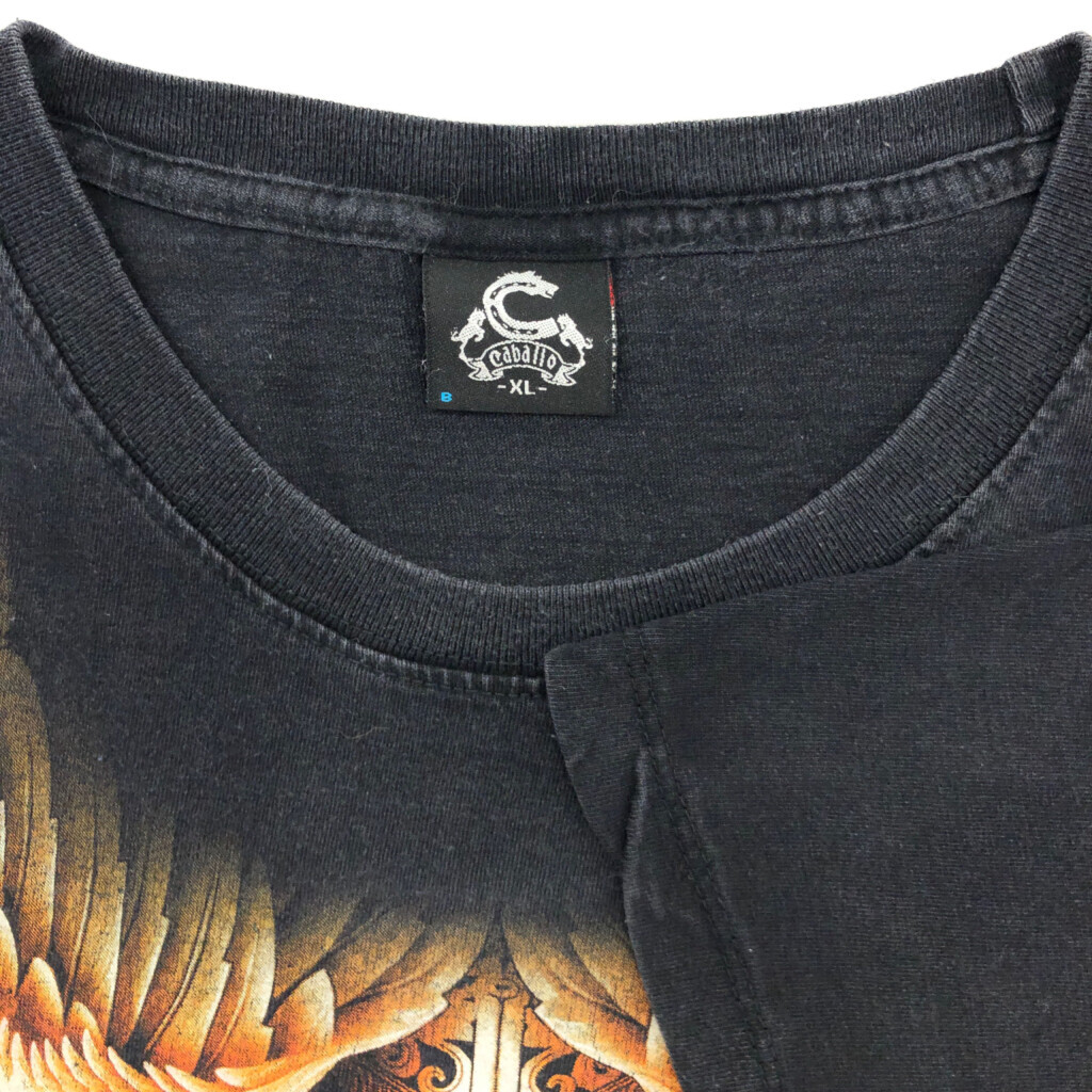 [商品管理番号] U2353 [サイズ] XL [実寸サイズ] 肩幅:約52cm 着丈:約75cm 身幅:約60cm 袖丈:約23cm [主な素材] 表地 : コットン [色] ブラック [仕様] トライバル [状態] 特記事項:色褪せ、袖ヨレ | |||