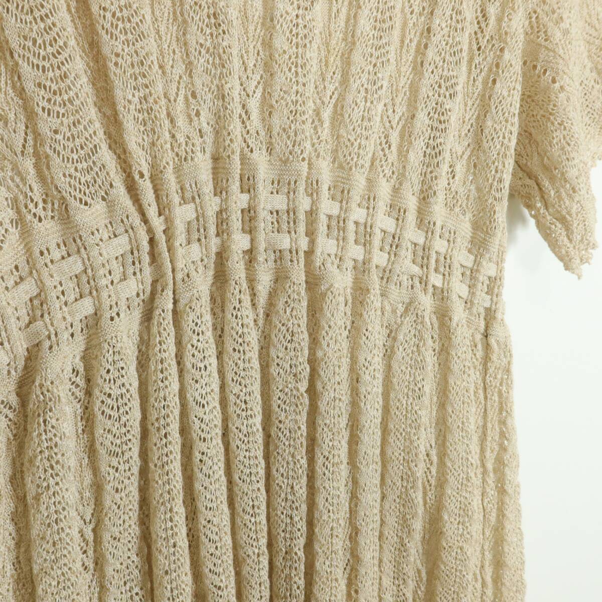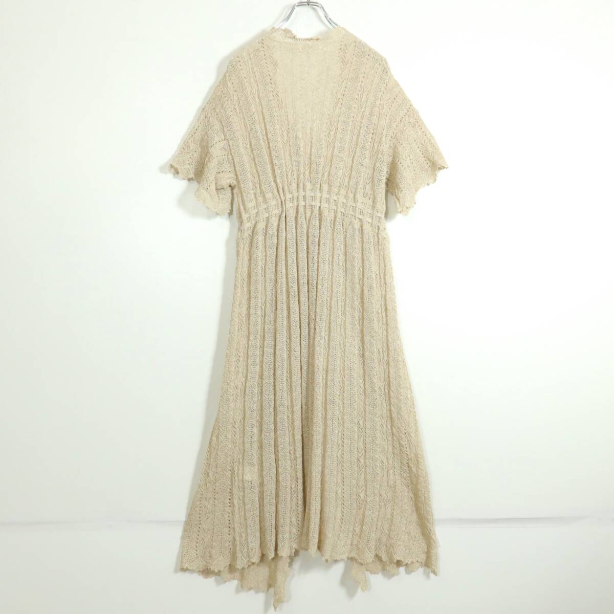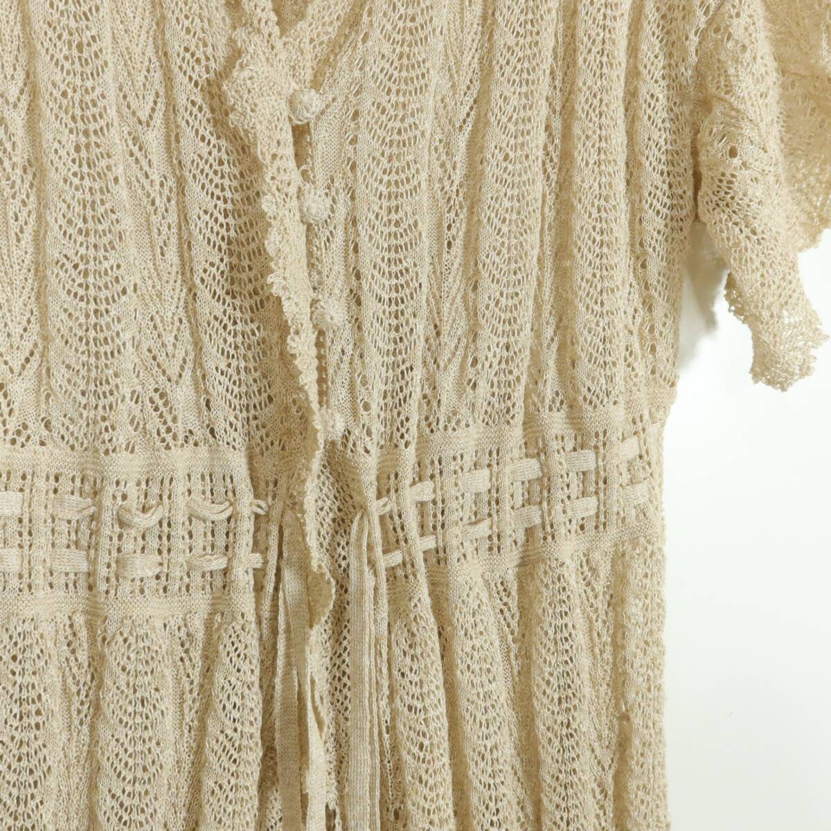 商品説明 | 【実寸約】裄丈50後ろ幅42着丈118(cm) 【サイズ表記】 なし。実寸をご参照くださいませ。 【素材】 ポリエステル85麻15 【状態】使用感少なめの美品 【デザイン】ベージュ系 総レースの半袖ロングカーディガンです。 フロントはボタンが4つあり、ウエストでひも2本を結ぶデザイン♪ 薄手 |