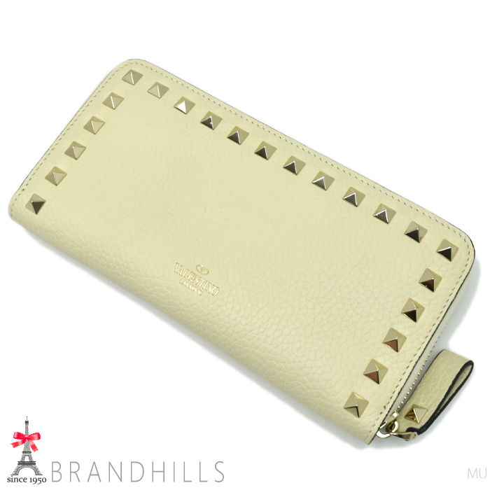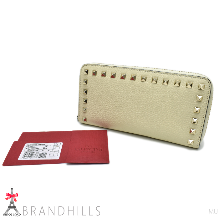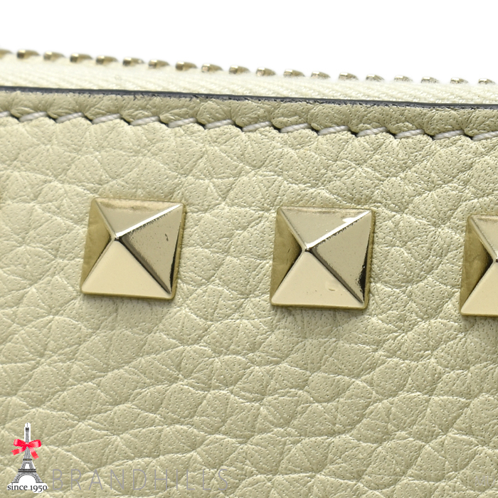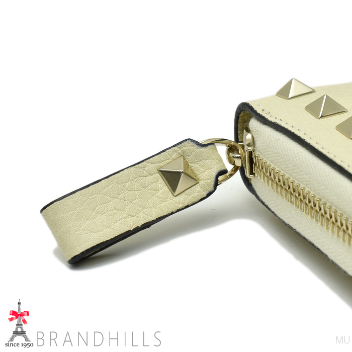ヴァレンティノ ガラヴァーニ 長財布 ロックスタッズ レザー アイボリー QW1P0645VSH VALENTINO GARAVANI 良品