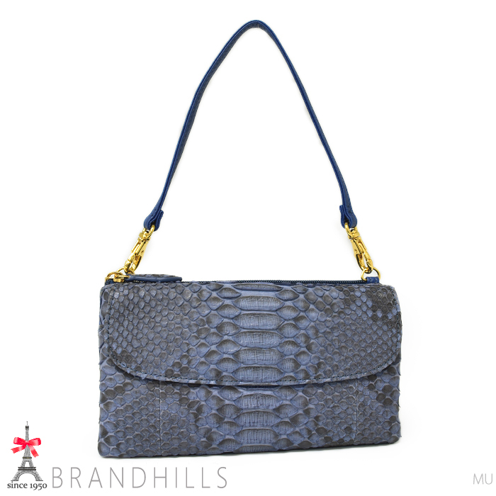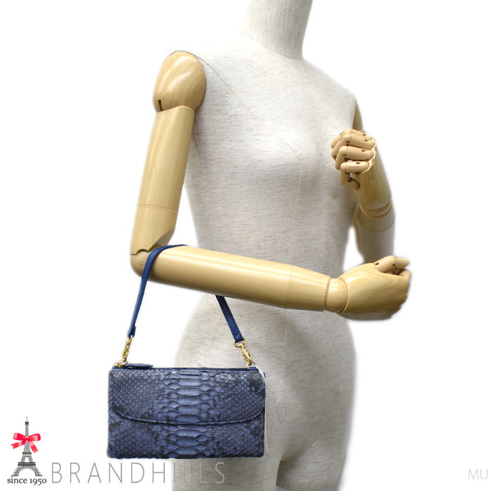 商品名パイソン ショルダーバッグ レディース マット加工 イリスブルー スネーク 錦ヘビ ウォレット 3WAYポーチ